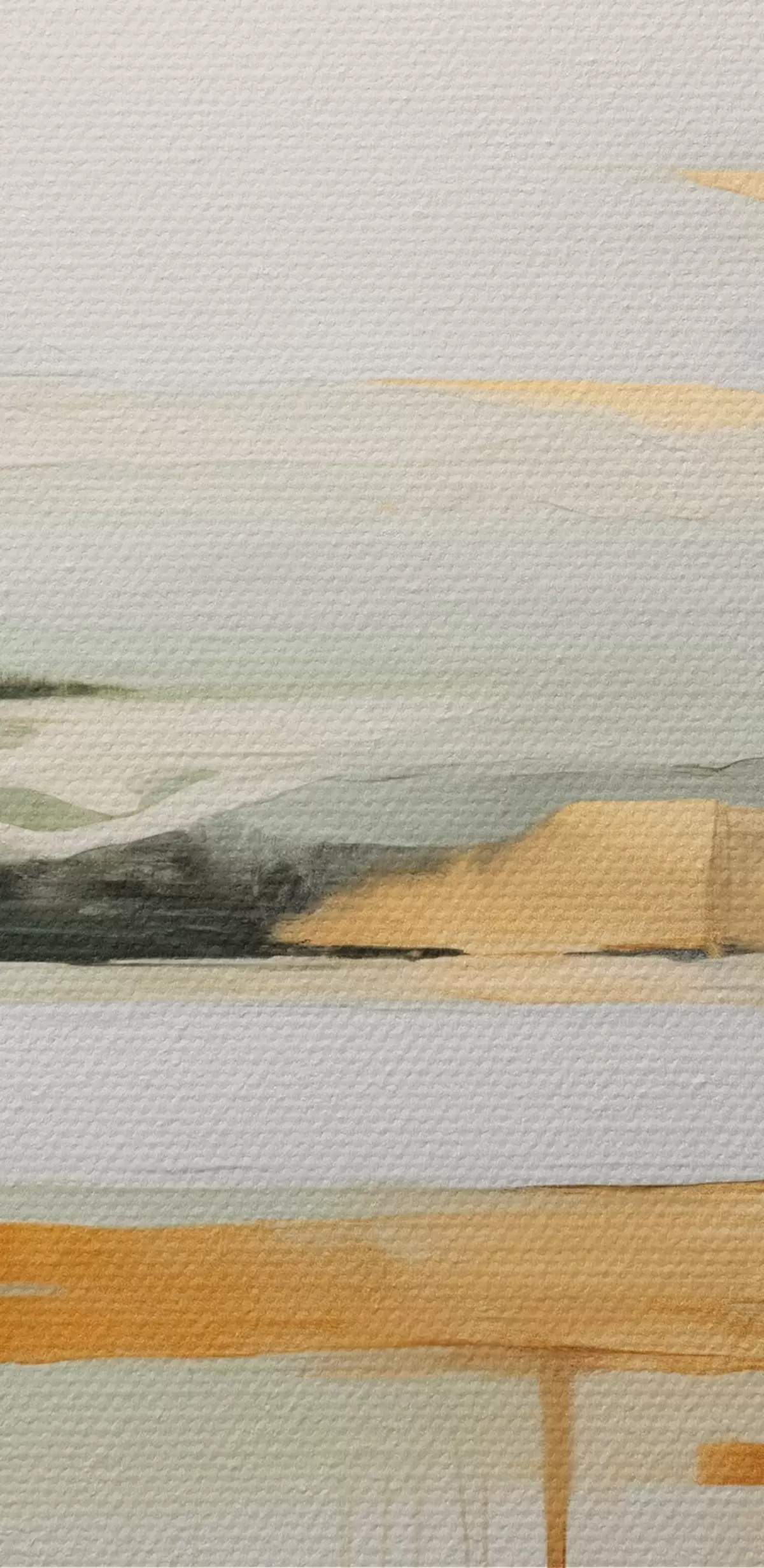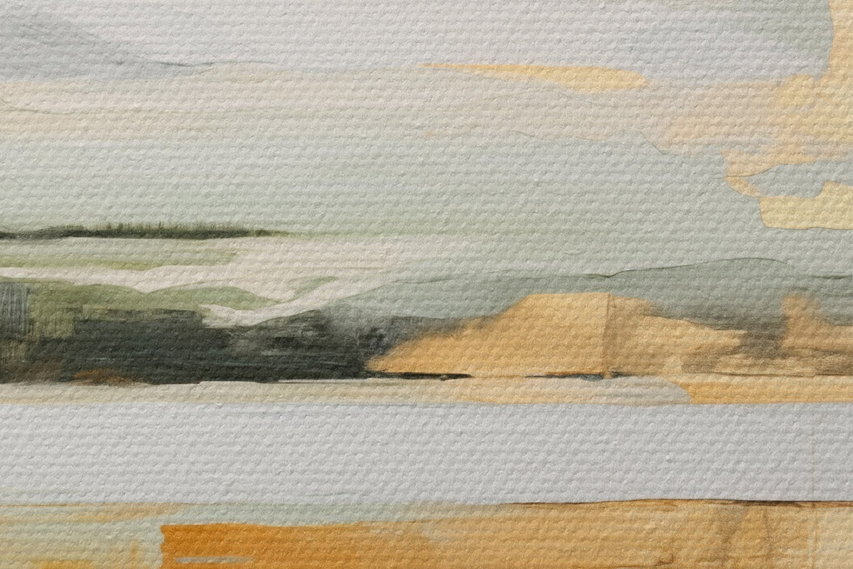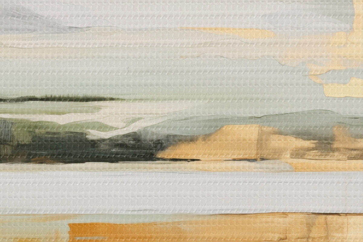 Кругла картина Абстрактний пейзаж з жовтими акцентами, мінімалістична композиція землі, води та неба, з приглушеними кольорами Nr r46268