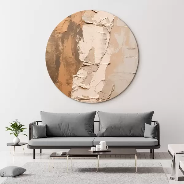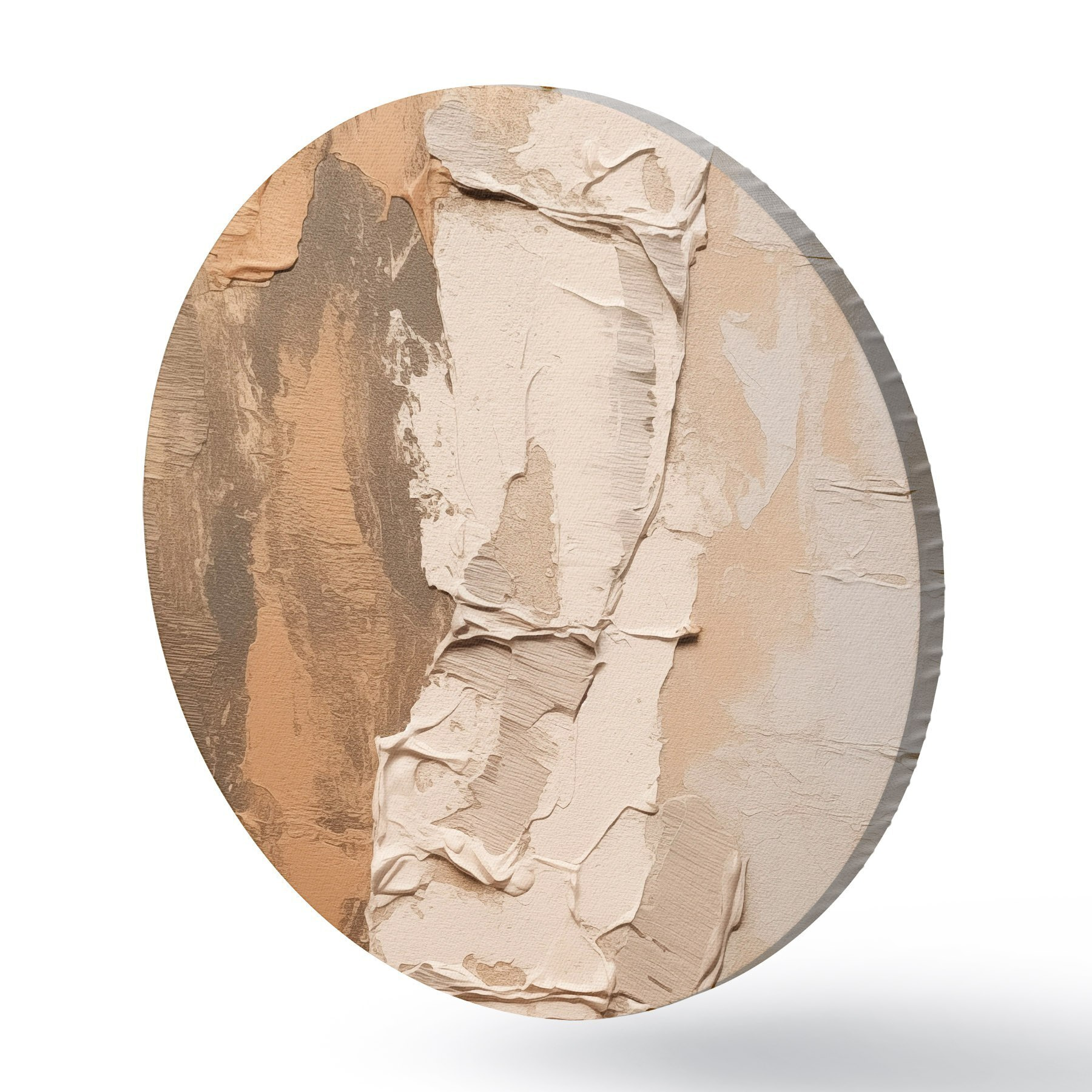 Кругла картина Абстрактний живопис з густими мазками, бежевими та коричневими тонами, фактурною поверхнею, нейтральною кольоровою гамою Nr r46272