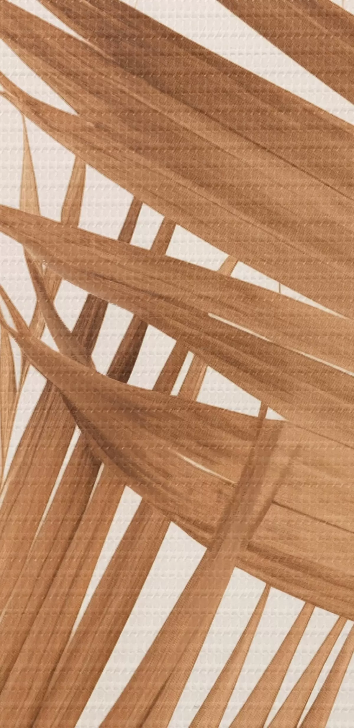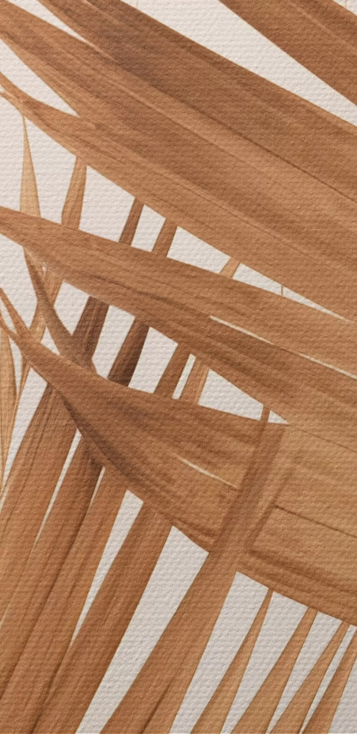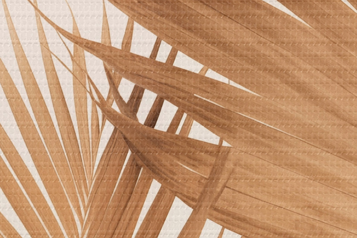 Кругла картина Пальмове листя в коричневих тонах, нейтральний фон, мінімалістичний стиль, природне освітлення, тропічна атмосфера r46274