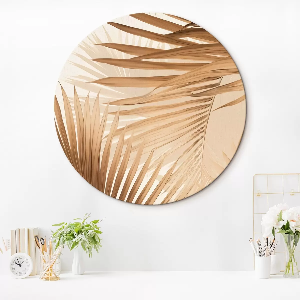 Кругла картина Абстрактні пальмові листя в коричневих тонах, тропічні, ботанічні, природа, мінімалістичний, елегантний, сучасний дизайн Nr r46275