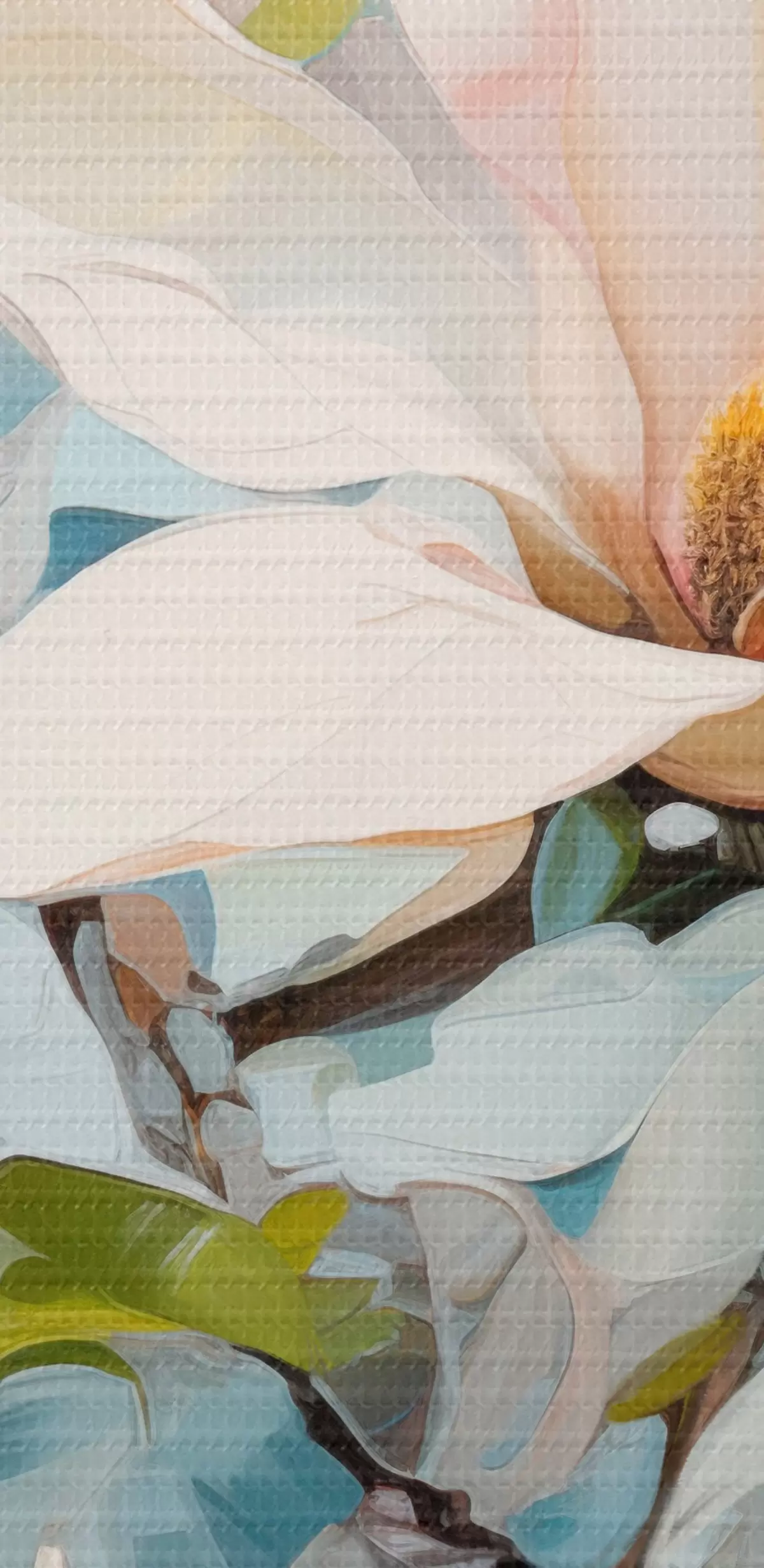 Кругла картина Білі квіти магнолії, світло-блакитний фон з м'якими мазками пензля, стиль олійного живопису, імпасто-текстура r46277