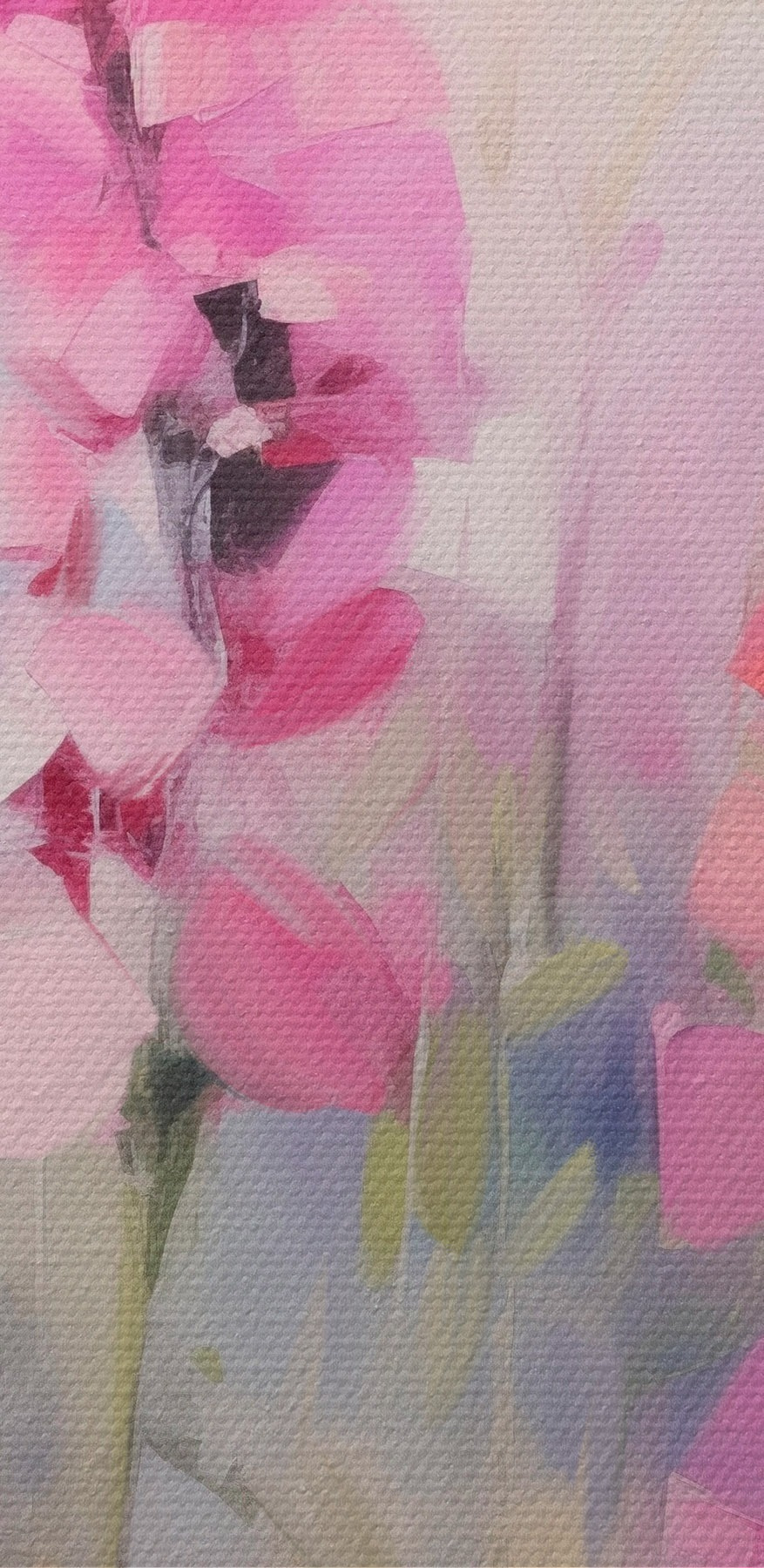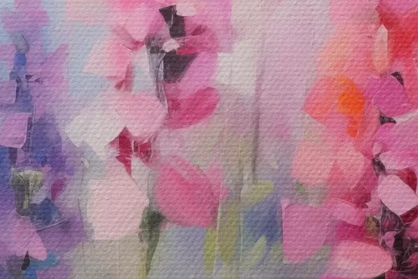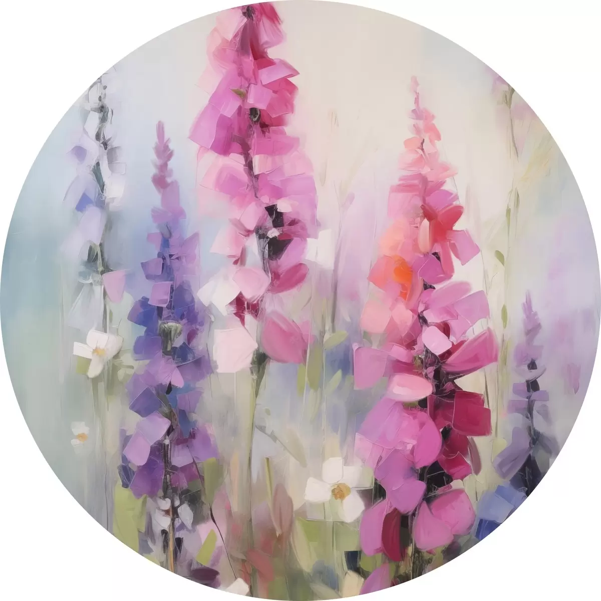 Кругла картина Рожеві та фіолетові квіти з білими маргаритками на полі, м'які мазки пензля, пастельні кольори, імпресіоністичний стиль Nr r46279