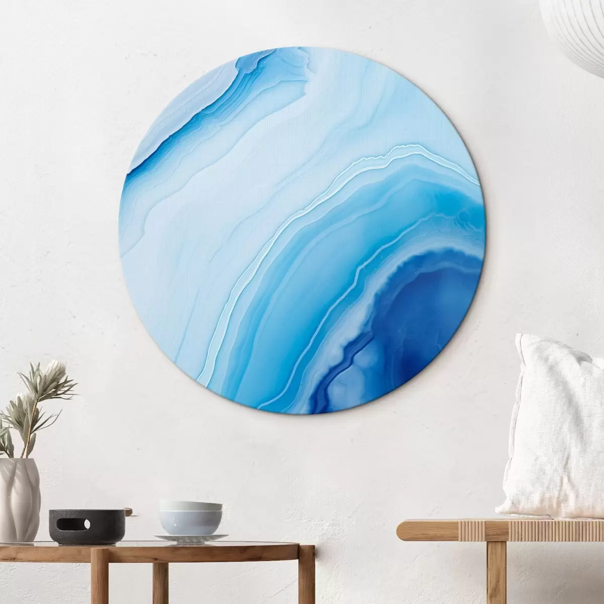 Кругла картина Абстрактний синьо-білий агатний принт, закручені лінії та градієнти, гладка текстура, сучасне мистецтво, мінімалізм r46290