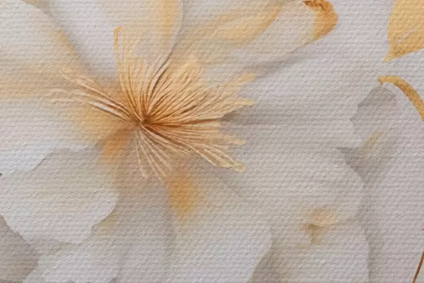 Кругла картина Білі квіти з жовтими деталями, пелюстки з легкими тінями, світлий фон з легким мармуровим ефектом r46292
