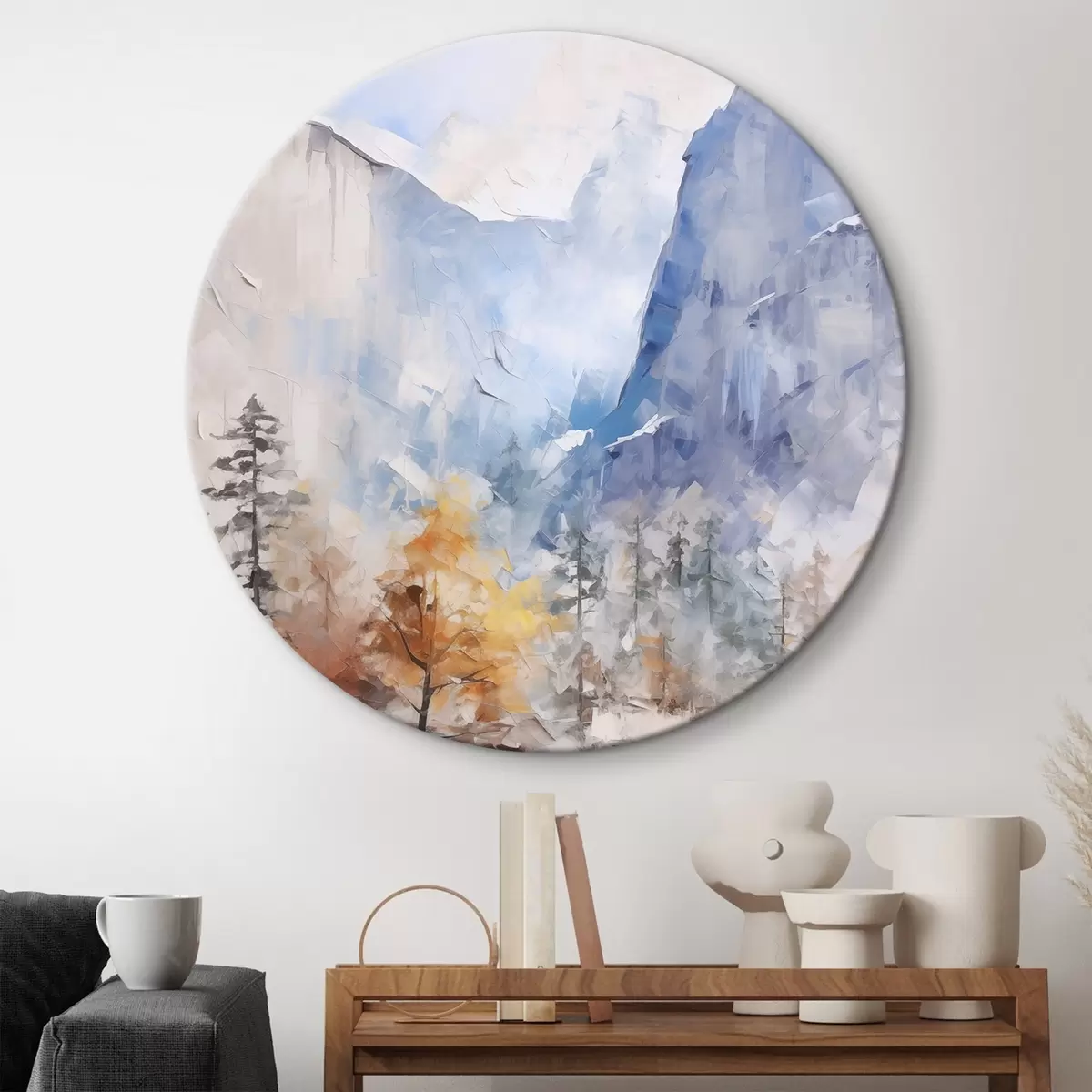 Кругла картина Абстрактний пейзаж лісу перед горами Nr r46298
