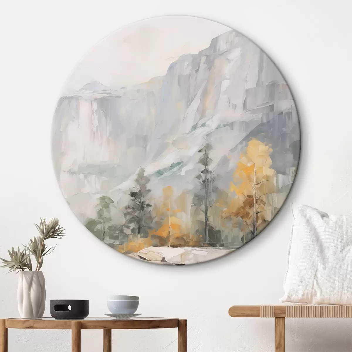 Кругла картина Пейзаж лісу перед горами, імітація живопису Nr r46299