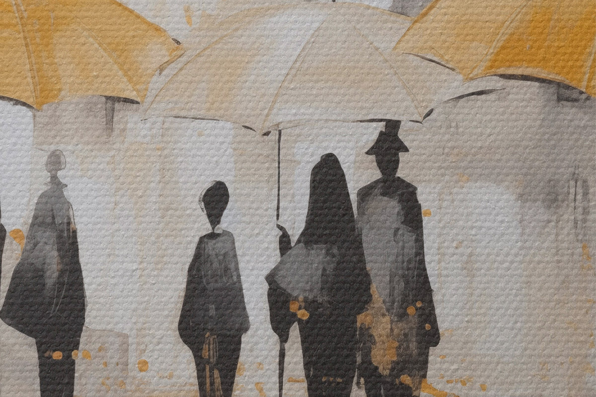 Кругла картина Абстракція людей з парасольками r46304