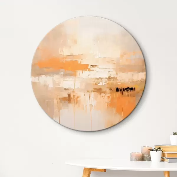 Кругла картина Ландшафтна абстракція в масляному стилі з помаранчевими та бежевими тонами Nr r46314