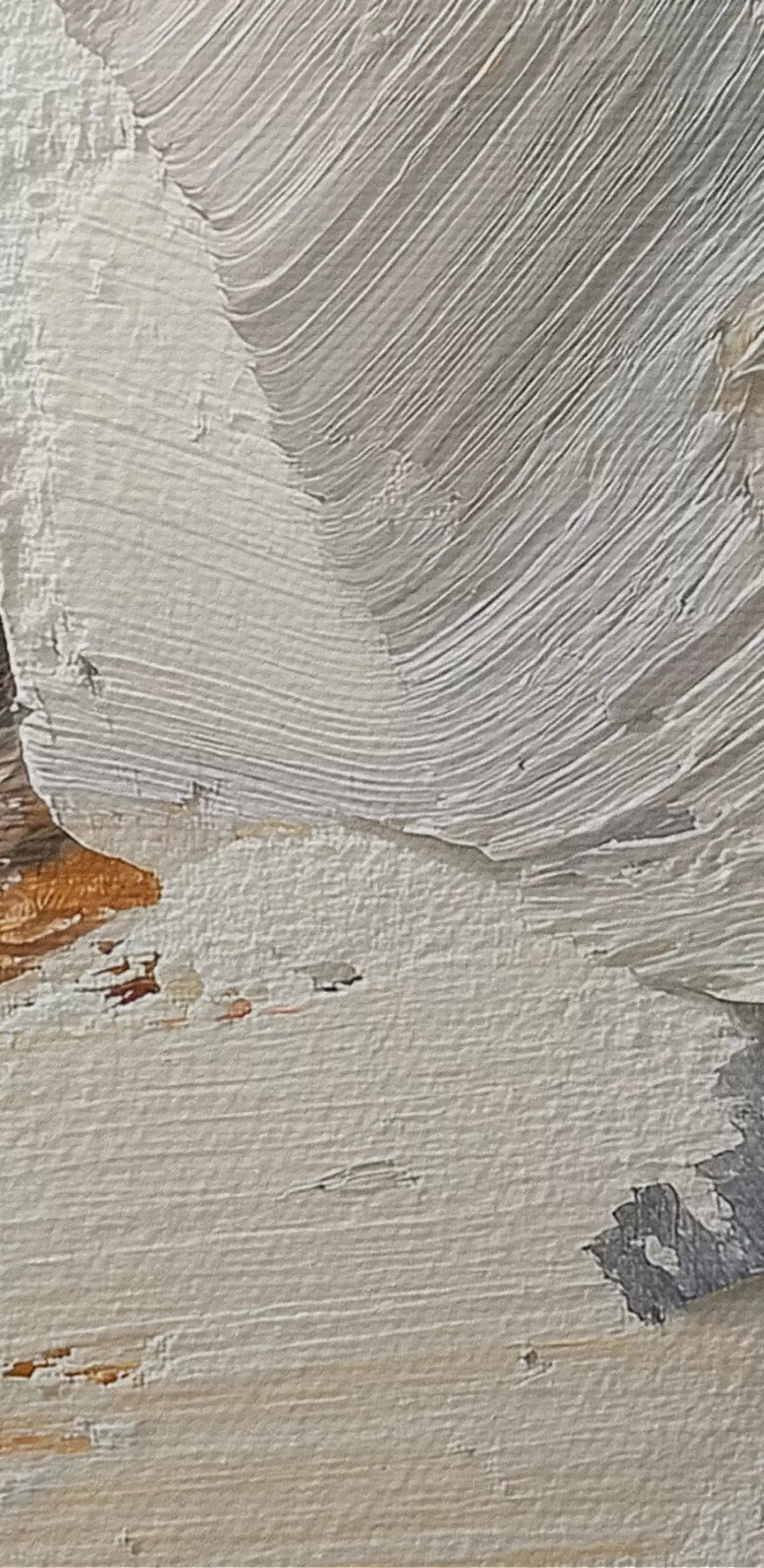 Картину можна акуратно протерти сухою м'якою тканиною або губкою, не рекомендується використовувати вологі засоби. Використання вологої губки допускається тільки в тому випадку, якщо картина була покрита лаком.