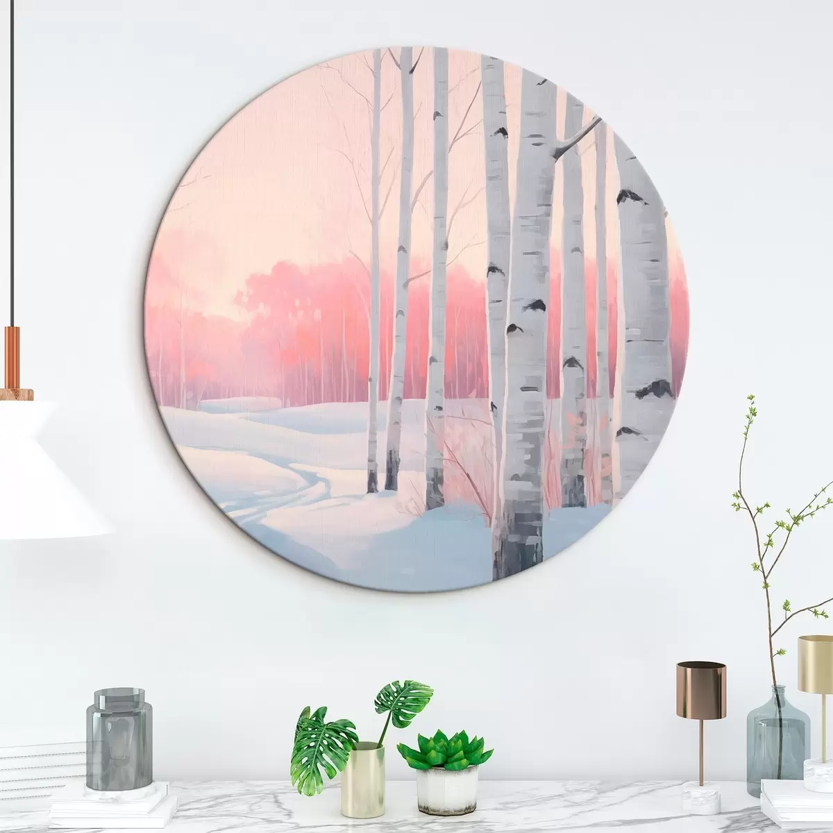 Кругла картина Березовий ліс Nr r46405