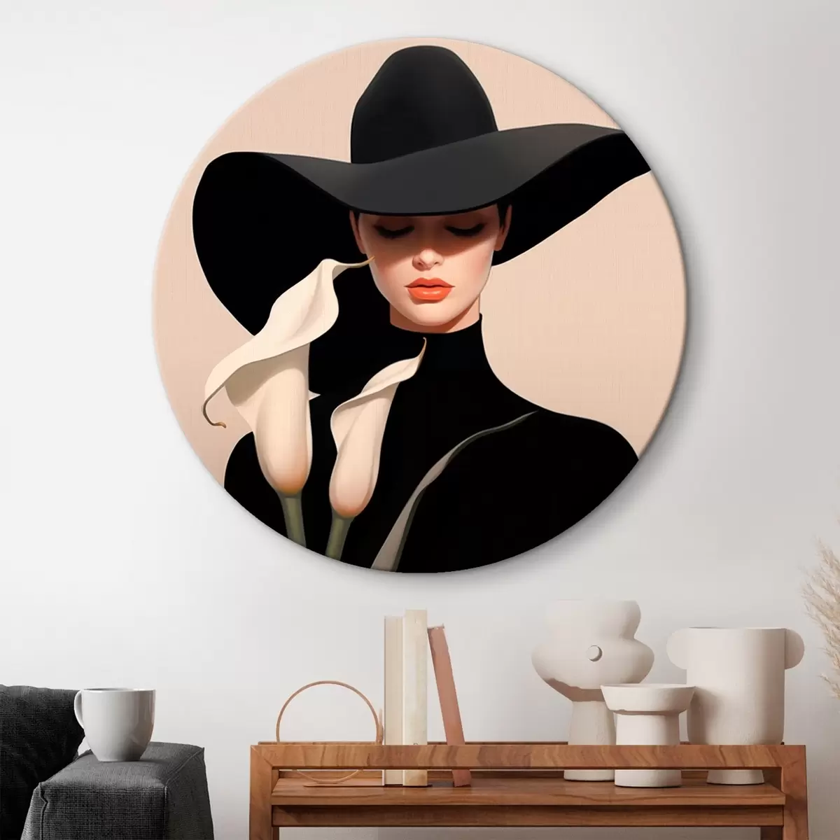 Кругла картина Дівчина в капелюсі з каласами r46420