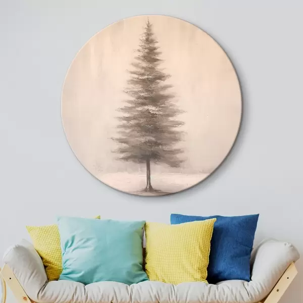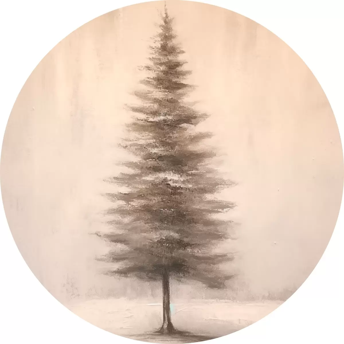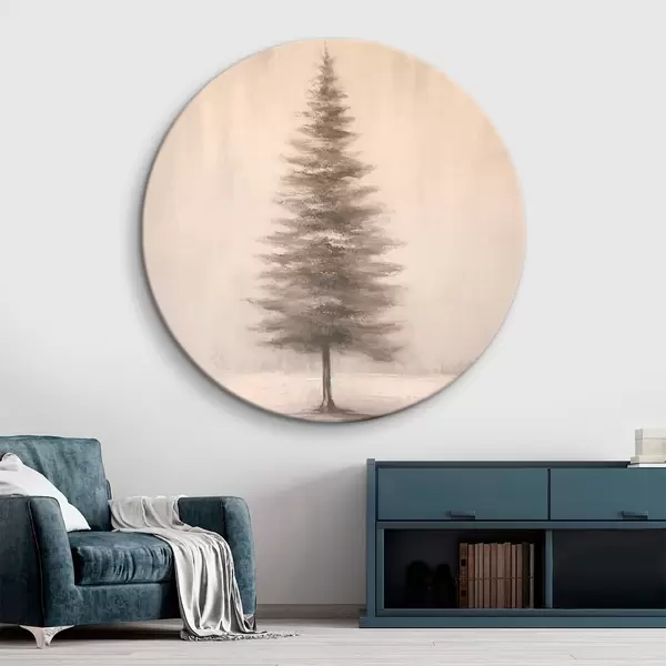 Кругла картина Монохромна ялинка. Мінімалістичний зимовий пейзаж r46465