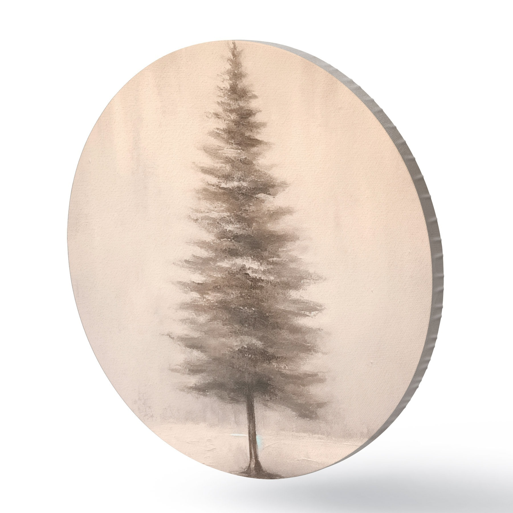 Кругла картина Монохромна ялинка. Мінімалістичний зимовий пейзаж Nr r46465