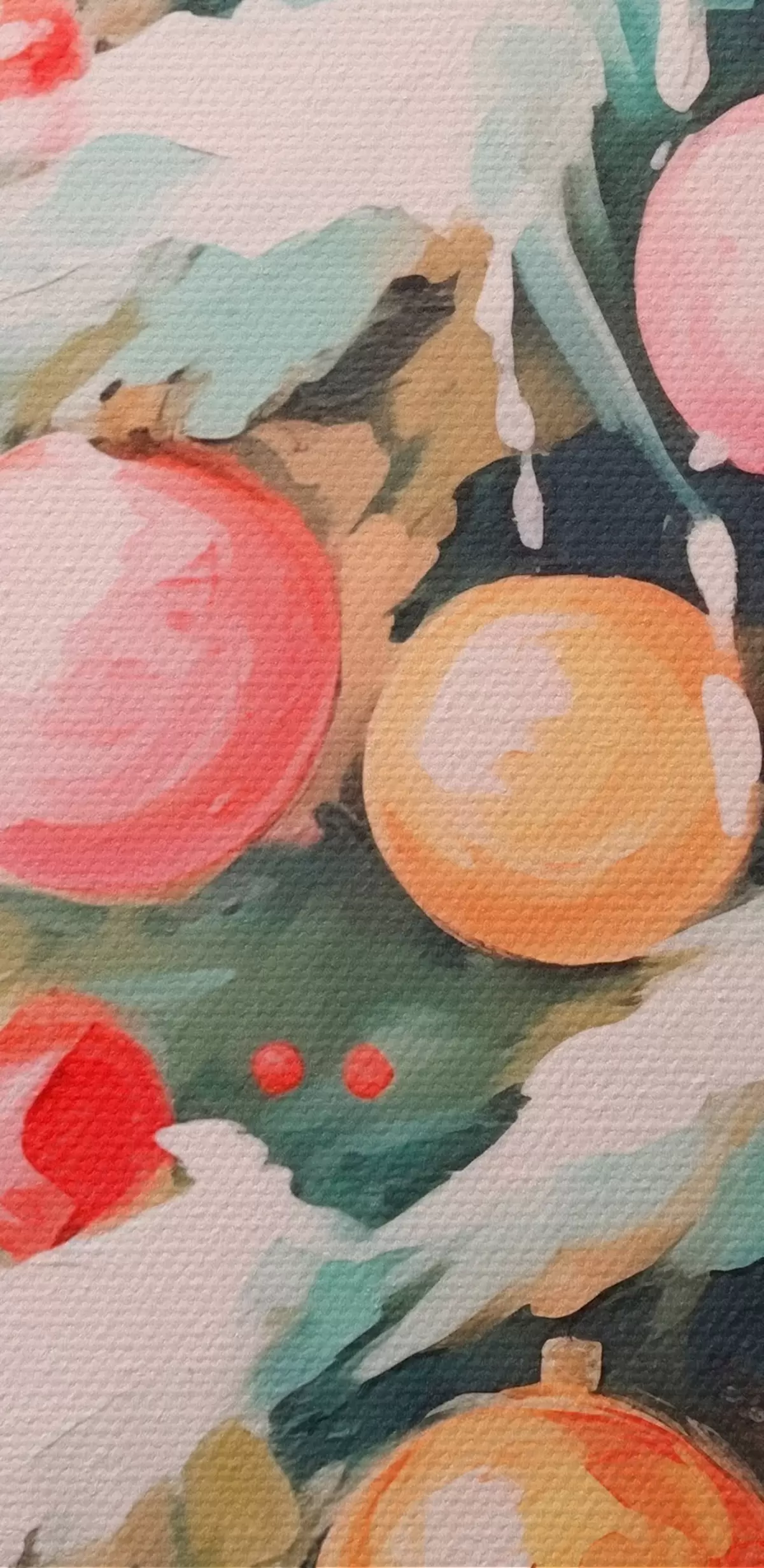 Кругла картина Ялинка зі снігом і рожевими кульками Nr r46480