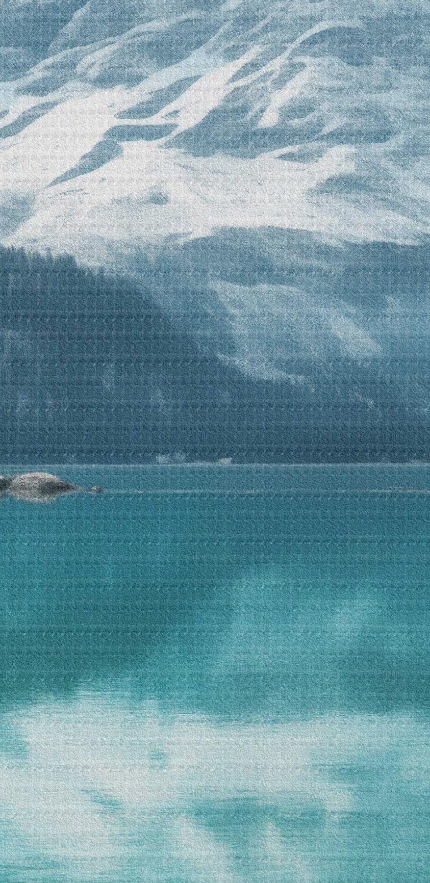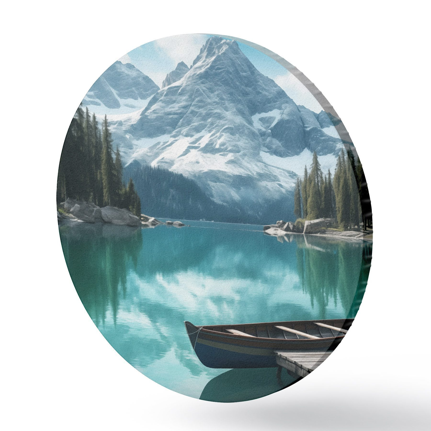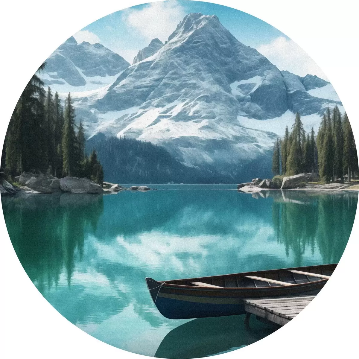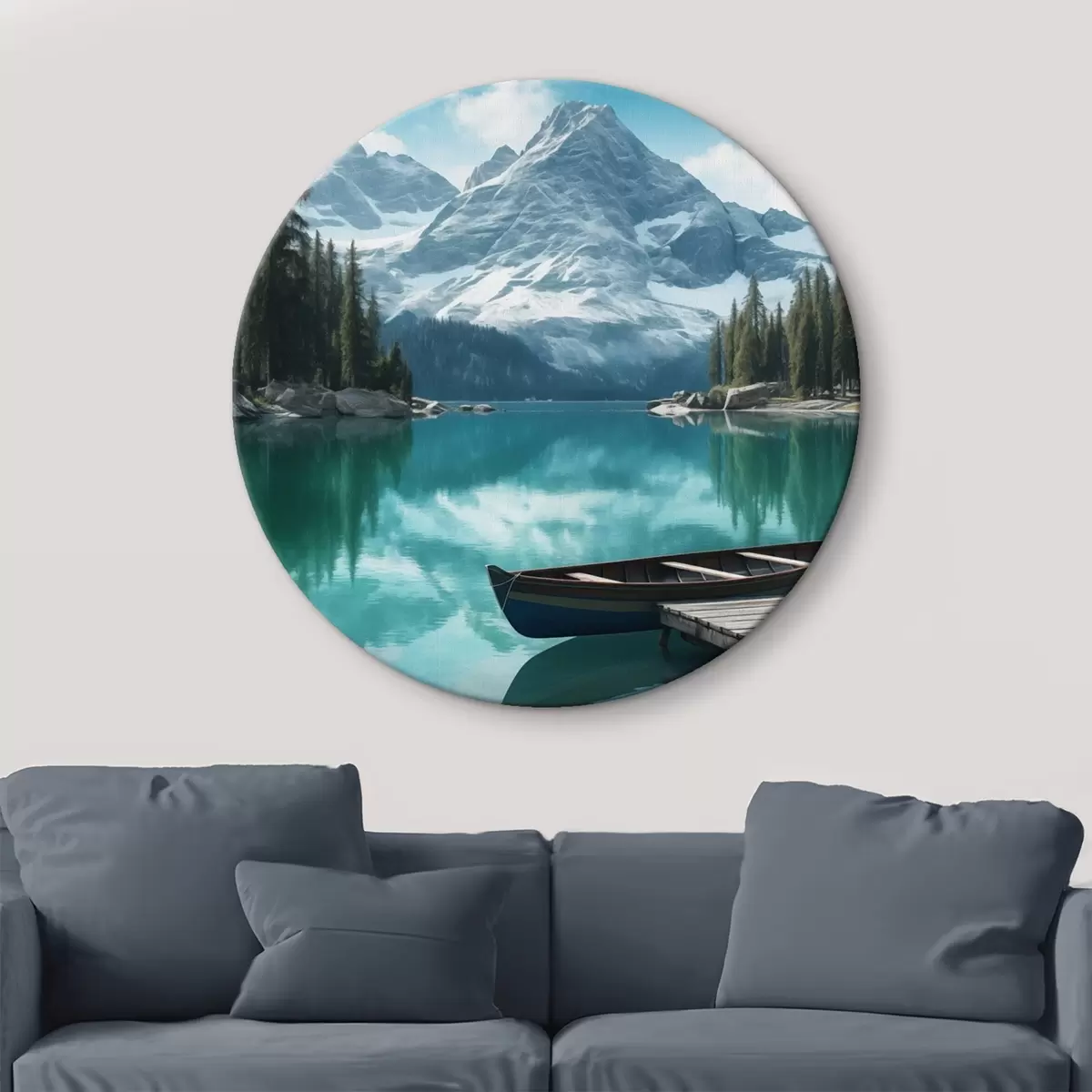Кругла картина Альпійське озеро з каное і засніженими вершинами r46481
