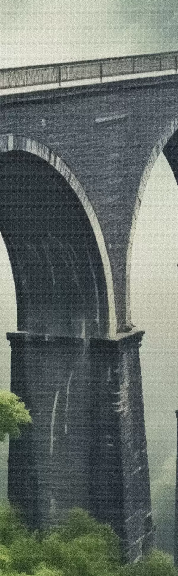 Кругла картина Кам'яний віадук над туманною лісистою долиною Nr r46483