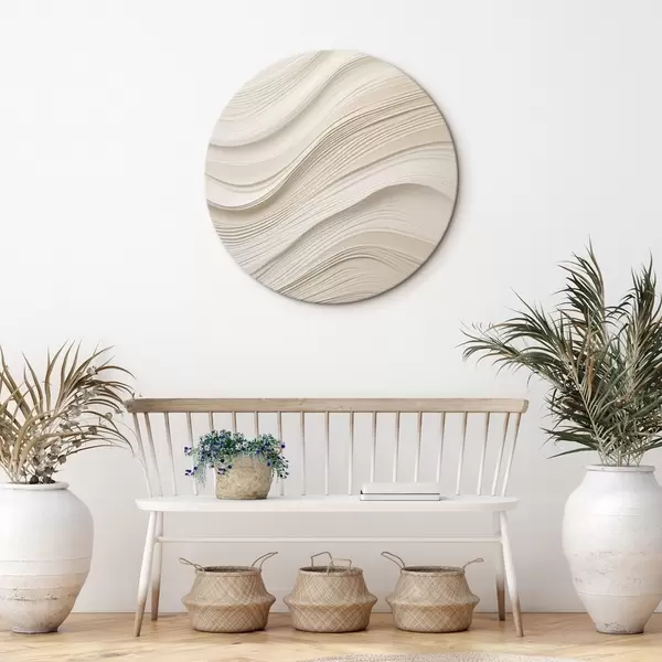 Кругла картина Багатошарові рельєфні хвилі пісочного відтінку, м'яка текстура Nr r46484