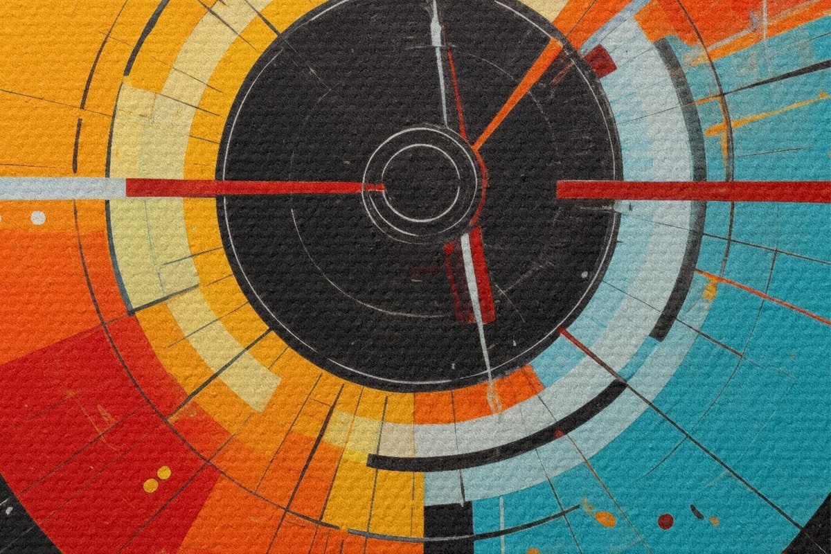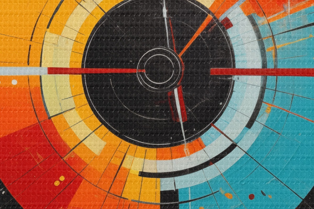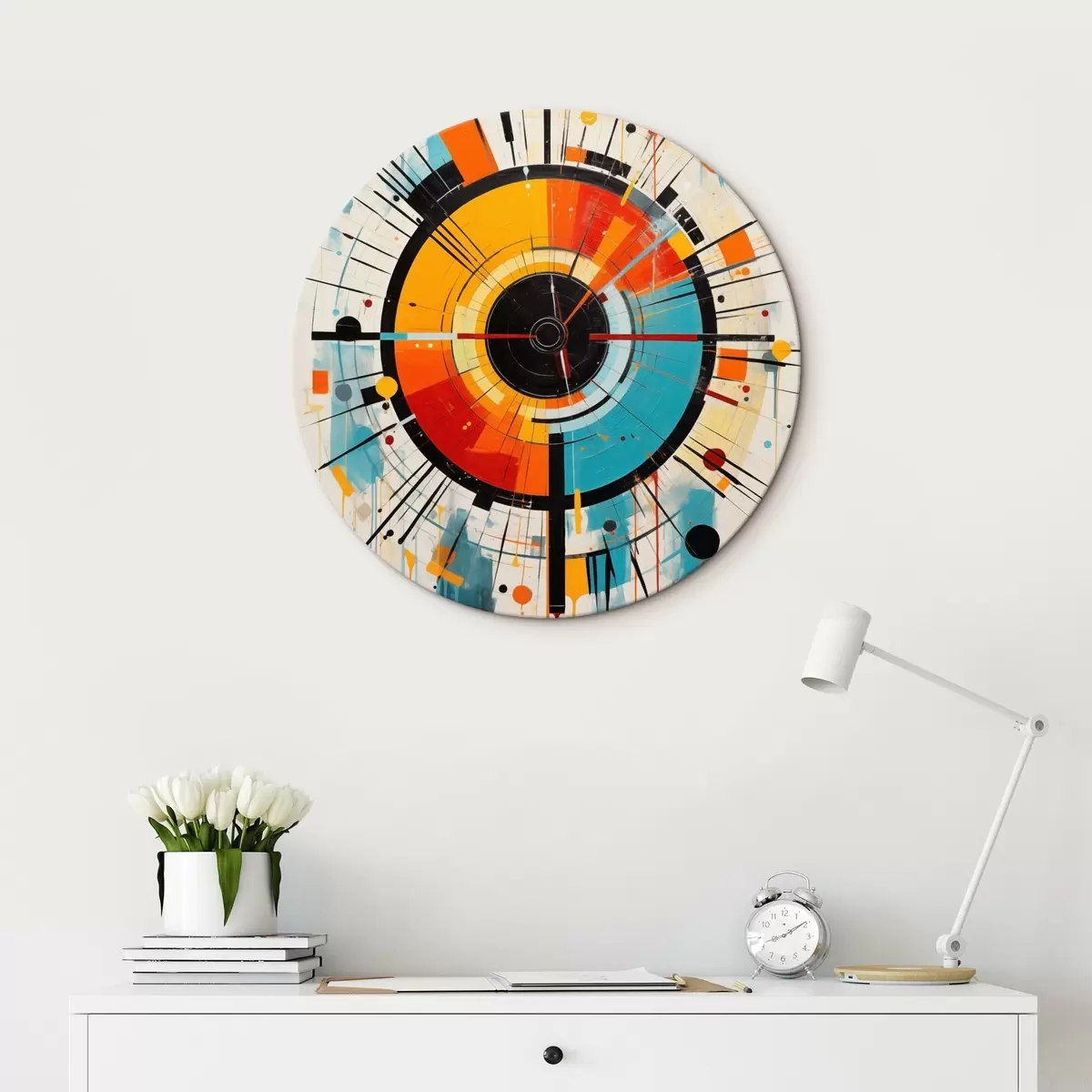 Кругла картина Радіальний вибух у кольорах синьо-зеленого, оранжевого та чорного r46485