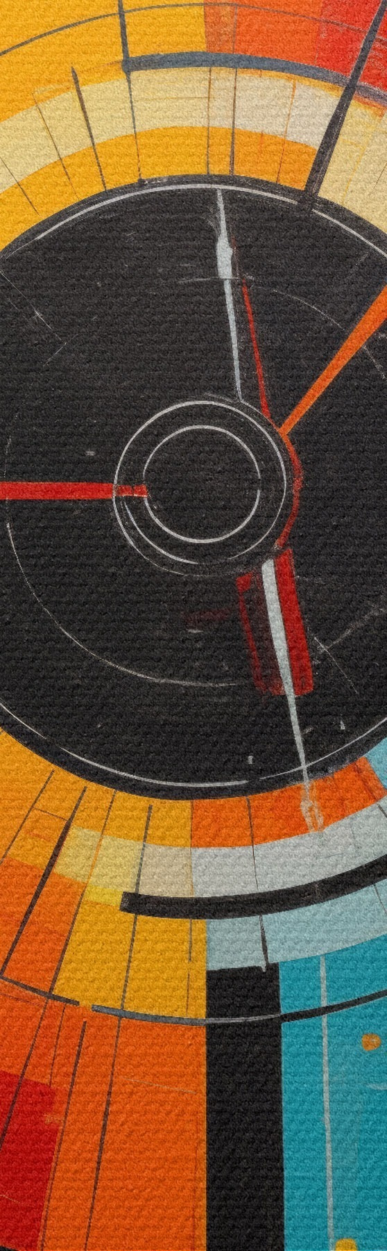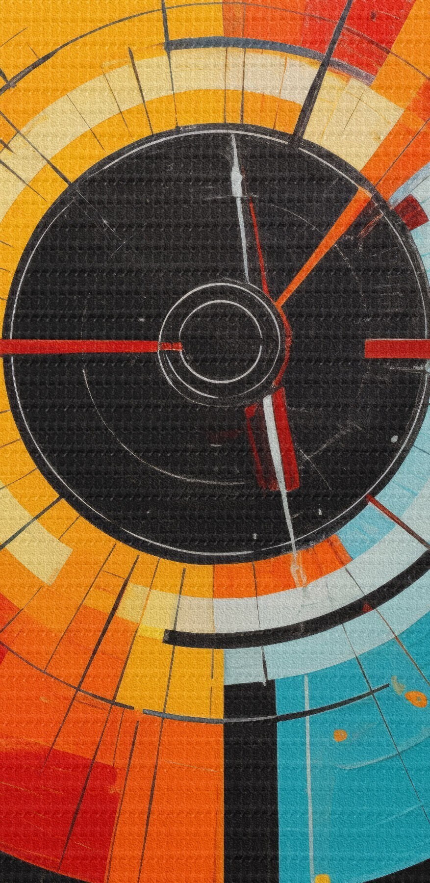 Кругла картина Радіальний вибух у кольорах синьо-зеленого, оранжевого та чорного Nr r46485