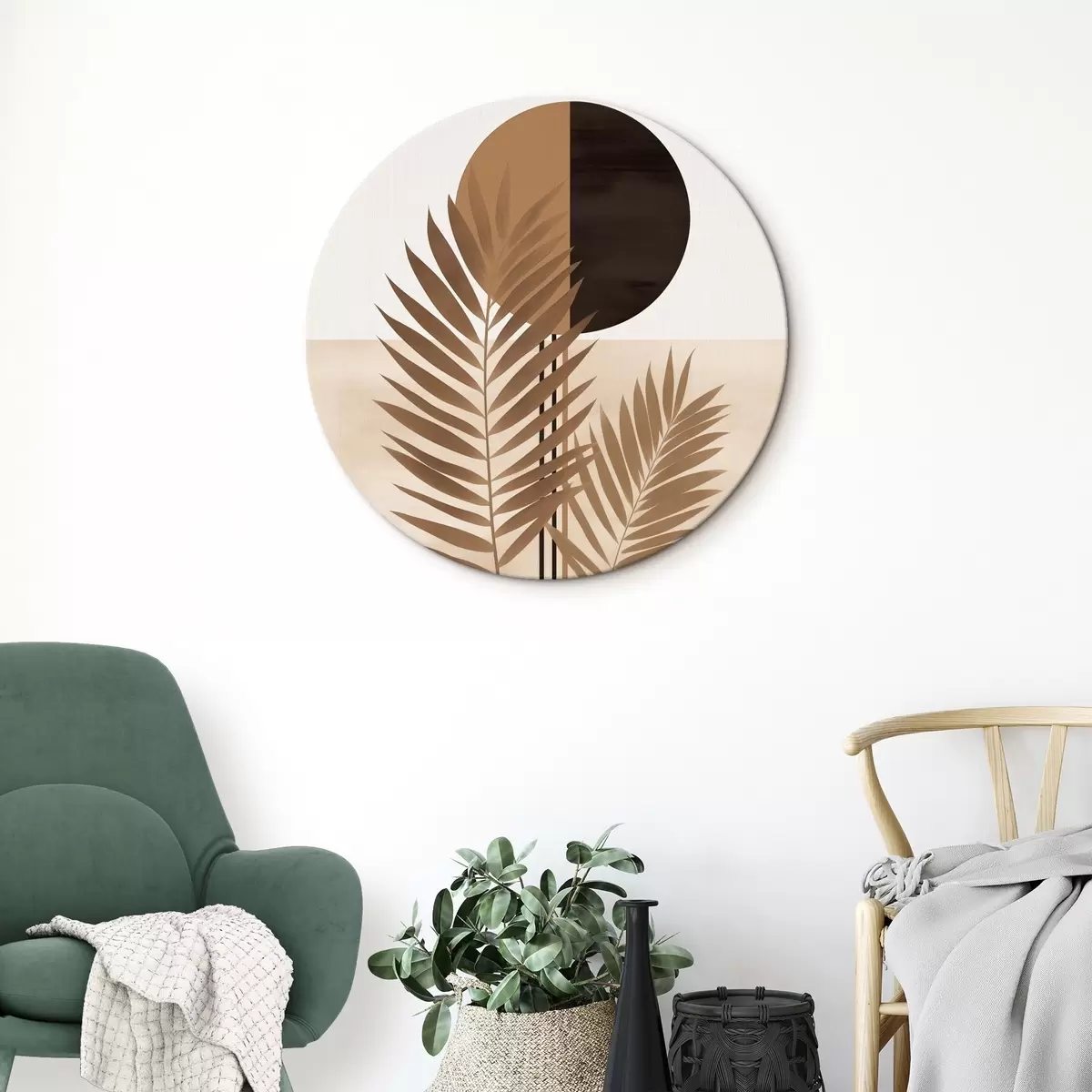 Кругла картина Два пальмові листки з мотивом розрізаного сонця Nr r46491