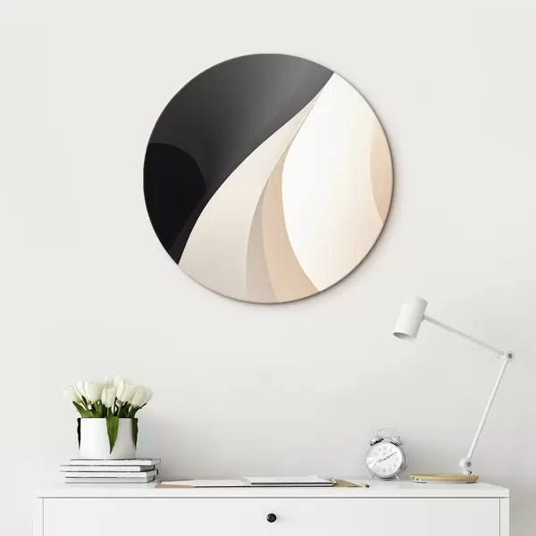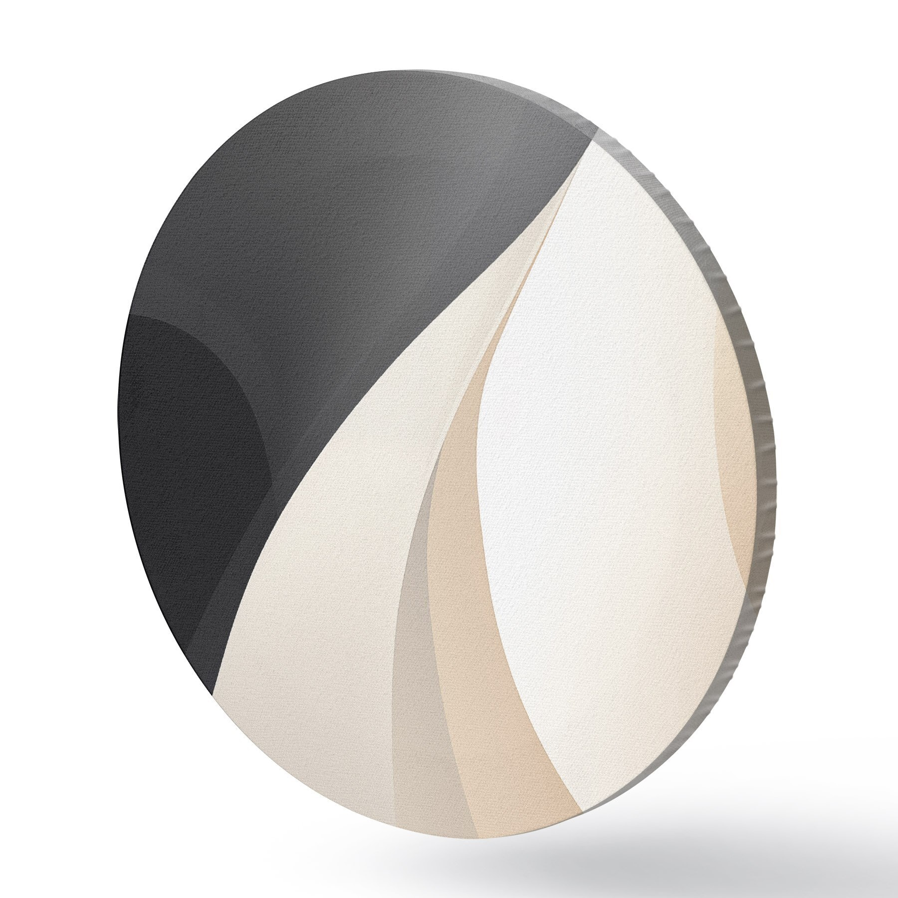 Кругла картина Елегантні перекриваючі криві в кольорах вугілля, слонової кістки та піску Nr r46493