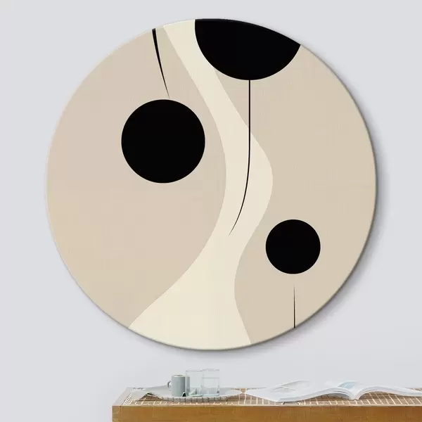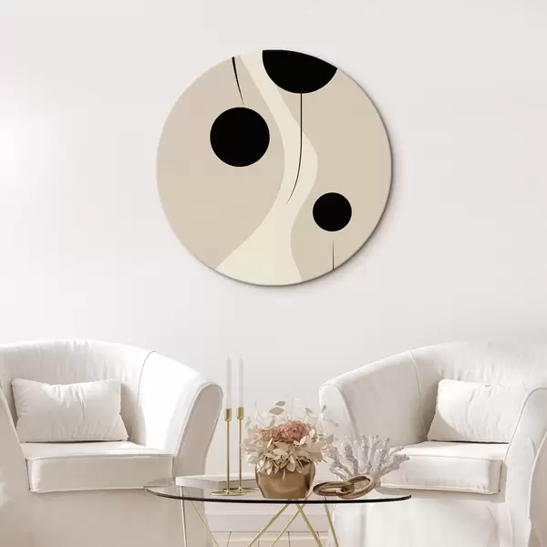 Кругла картина Мінімалістичні кола на бежевому тлі з плавними лініями Nr r46496