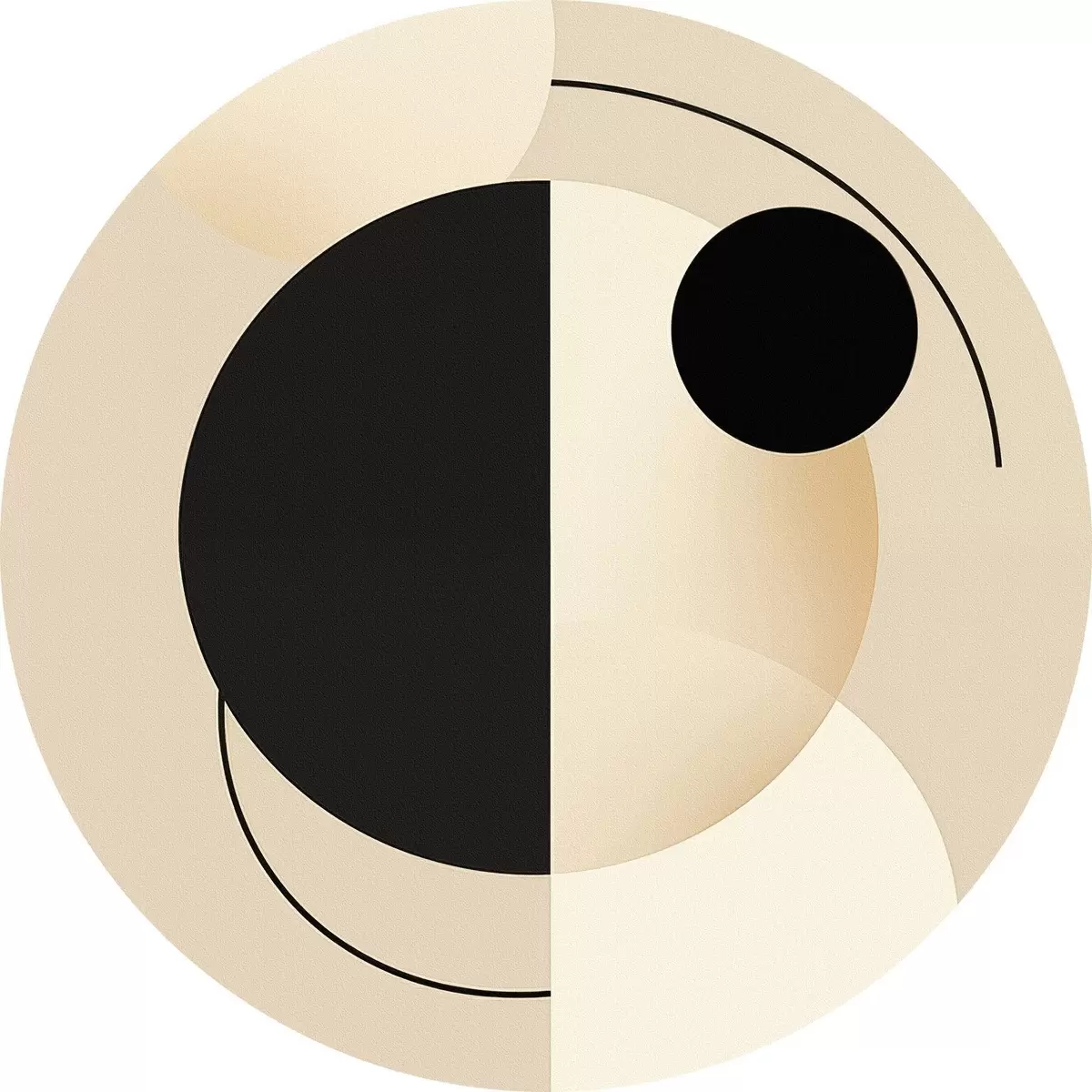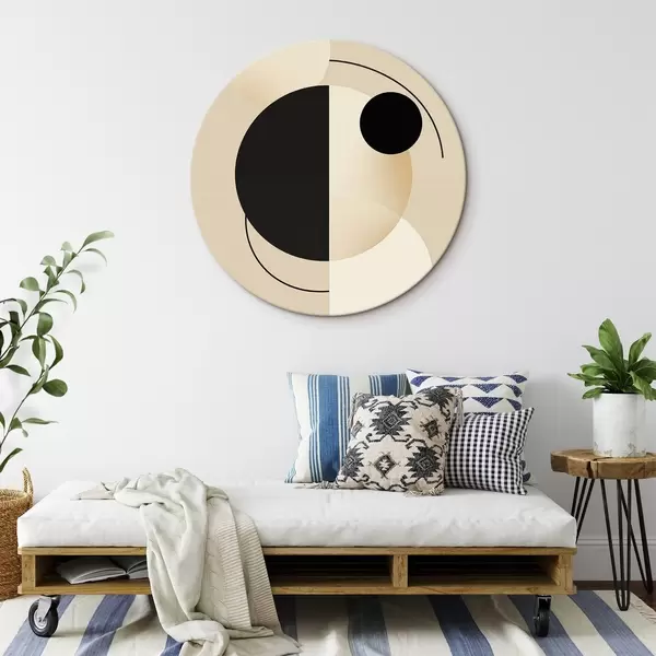 Кругла картина Графічні кола та дуги в м'яких бежевих та чорних тонах r46497