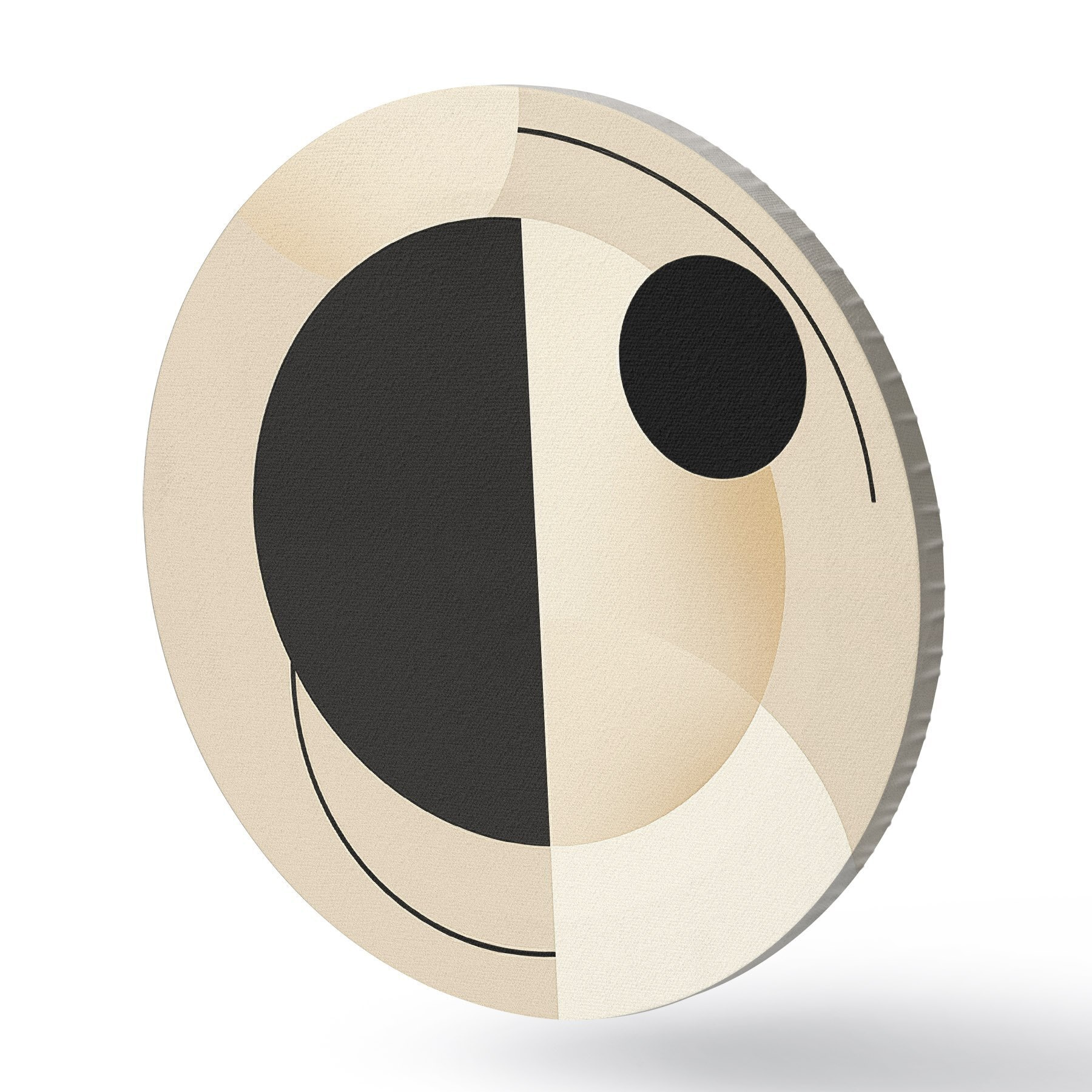 Кругла картина Графічні кола та дуги в м'яких бежевих та чорних тонах Nr r46497