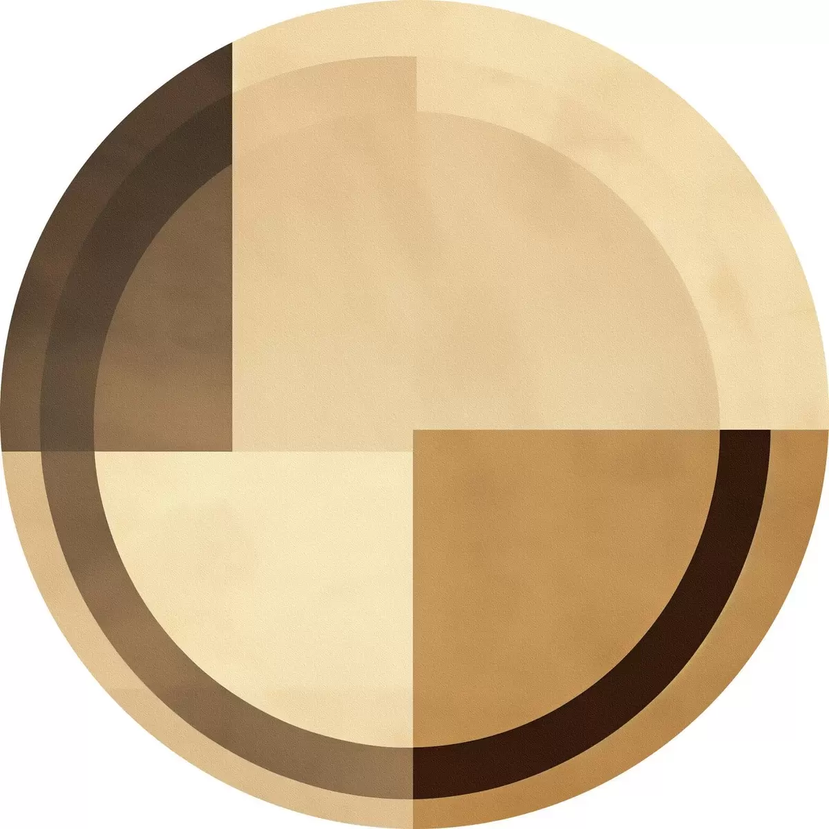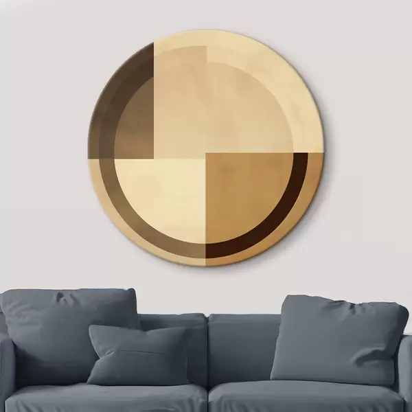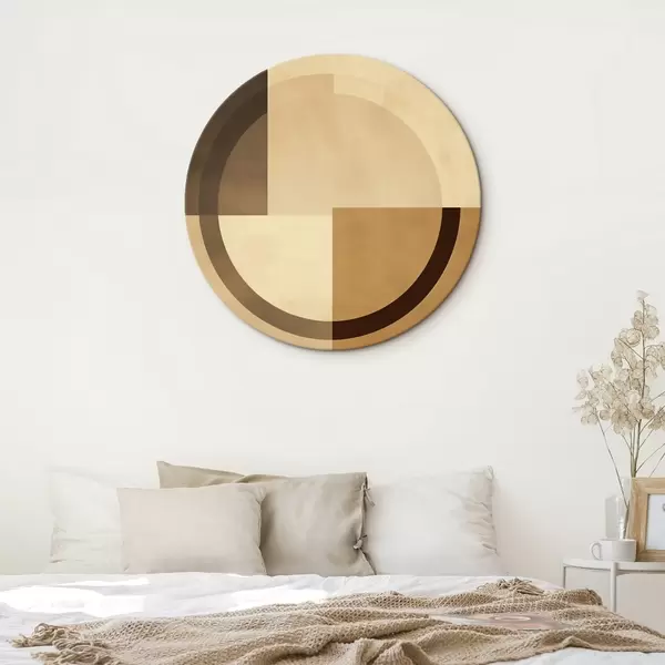 Кругла картина Приглушені квадрати з напівпрозорим кільцем, тепла землиста палітра r46498