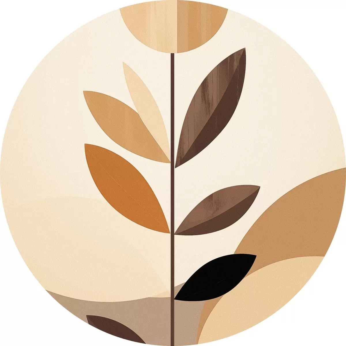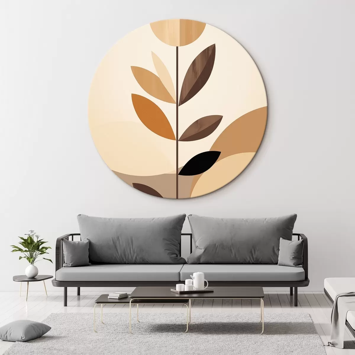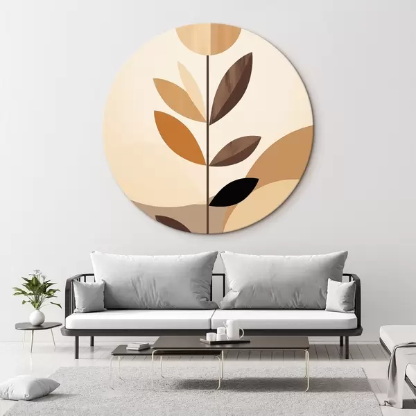Кругла картина Стилізована квітка з геометричними листям у теплих тонах r46500