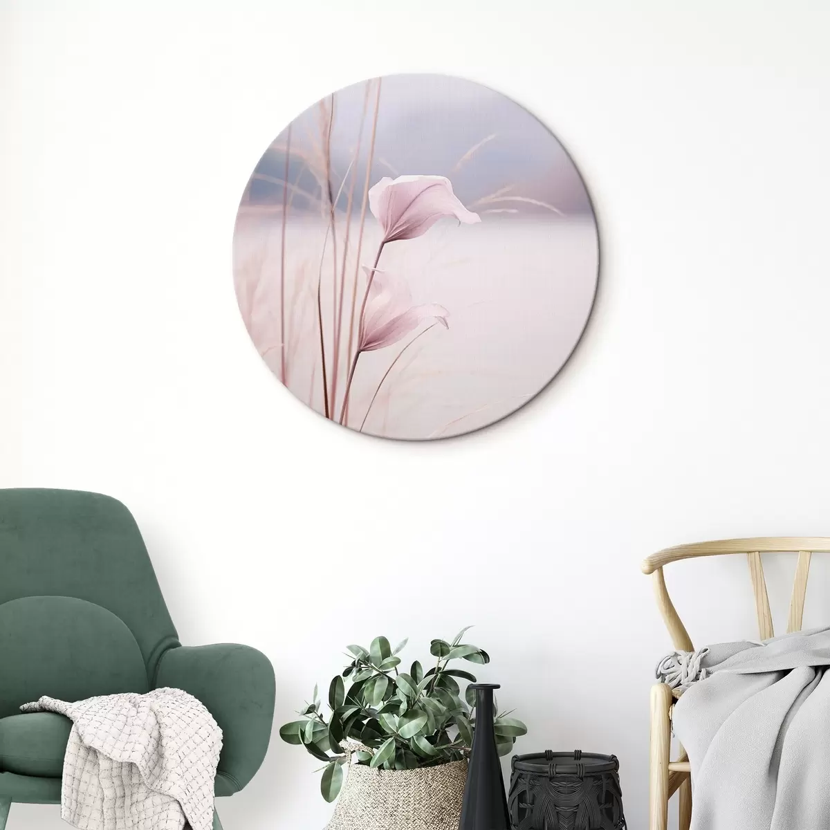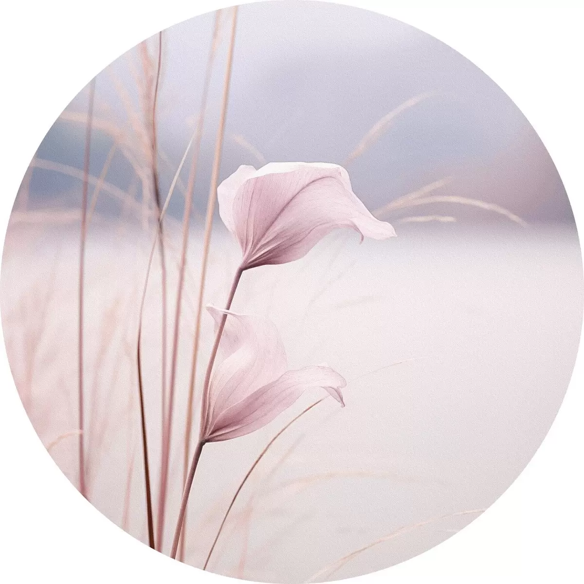 Кругла картина Ніжні рожеві квіти біля тихого озера r46503