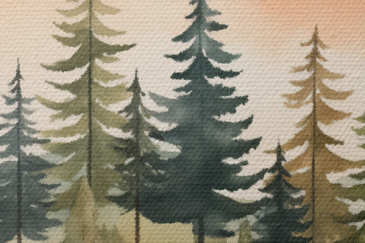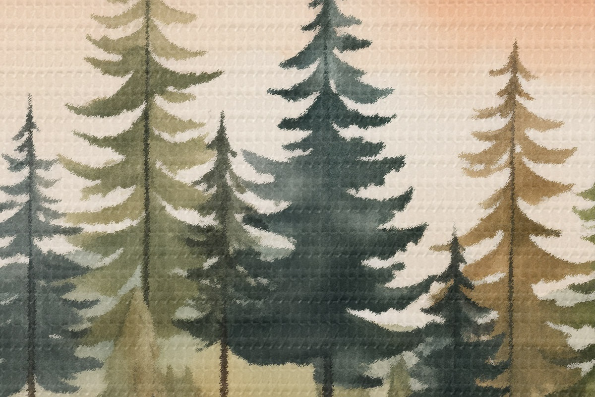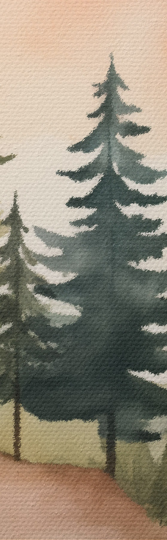 Кругла картина Акварельні сосни на туманному острівці, м'яке персикове небо r46505