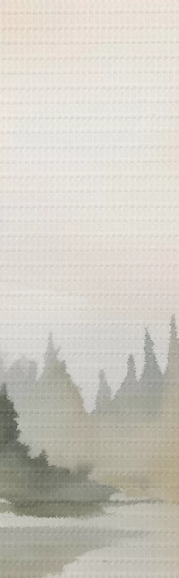 Кругла картина Туманний хвойний ліс над спокійною річкою, акварельний стиль Nr r46507
