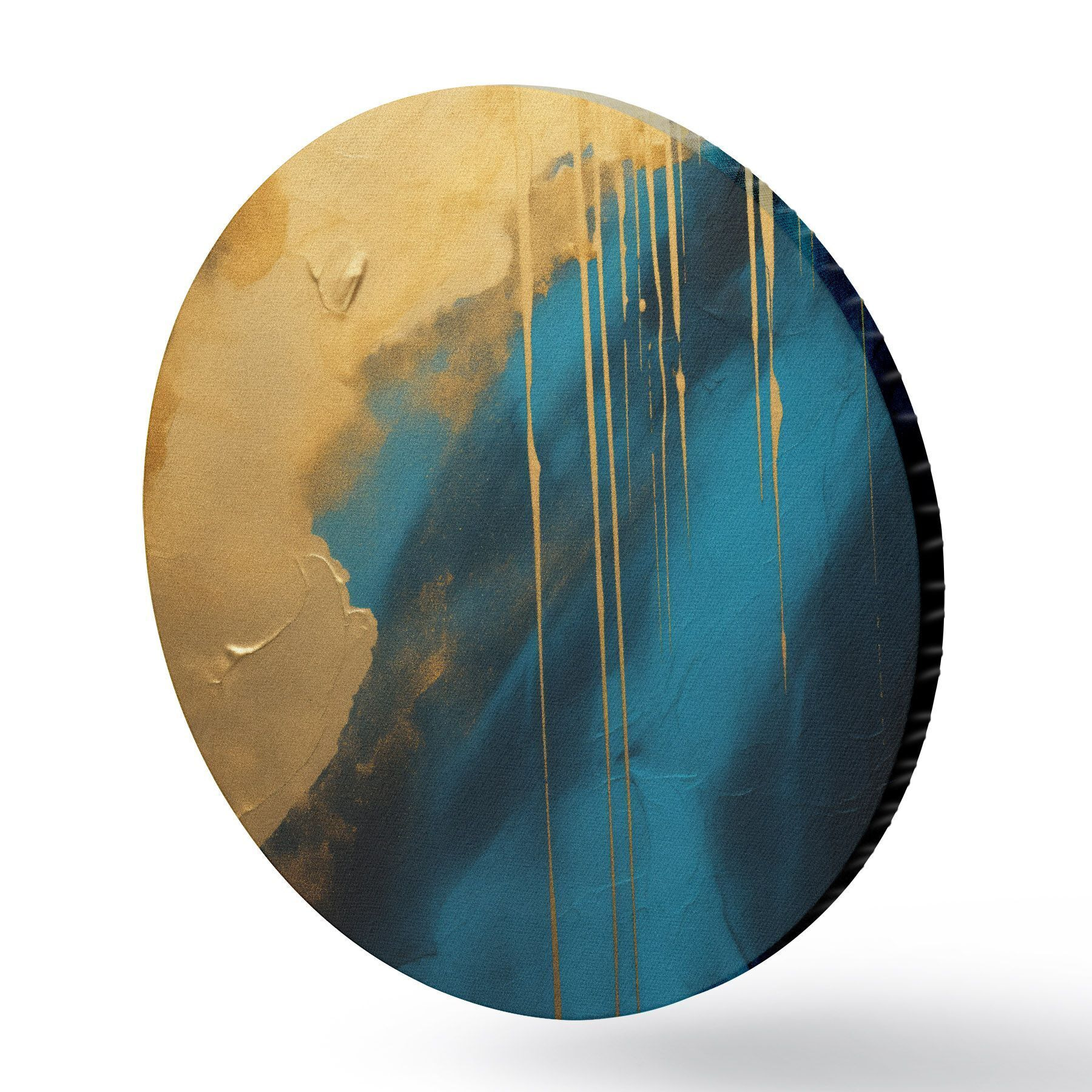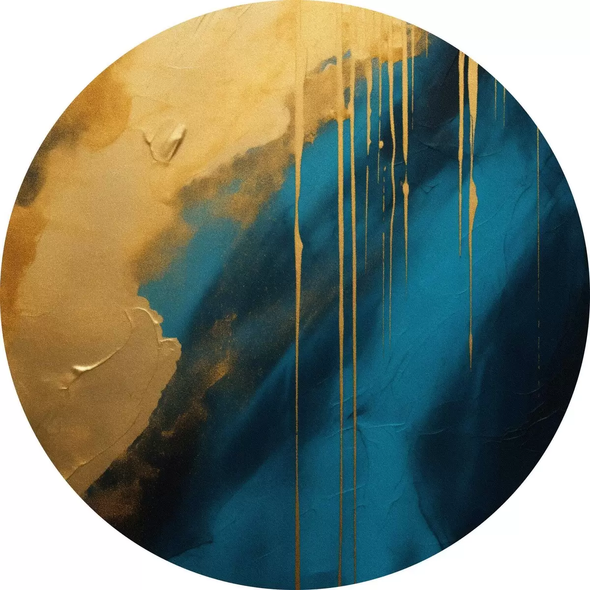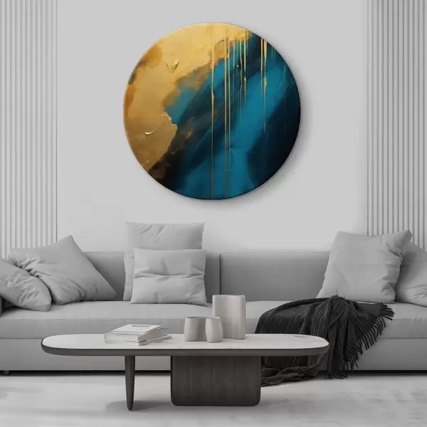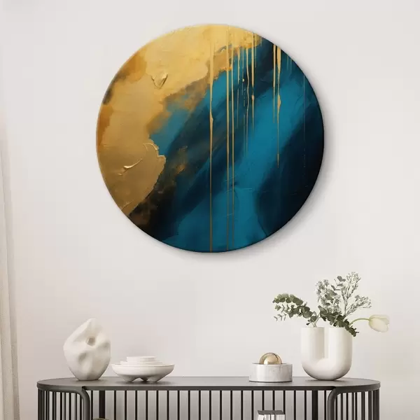 Кругла картина Бірюзовий і темно-синій абстрактний малюнок з плавними теплими відблисками Nr r46509