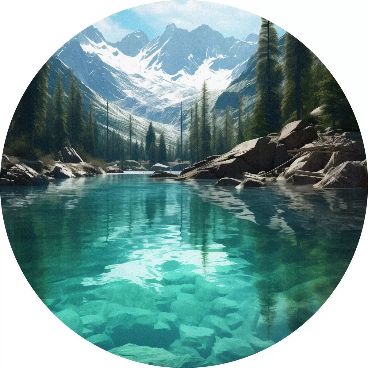 Кругла картина Чиста альпійська річка з кам'янистим дном і засніженими вершинами r46514