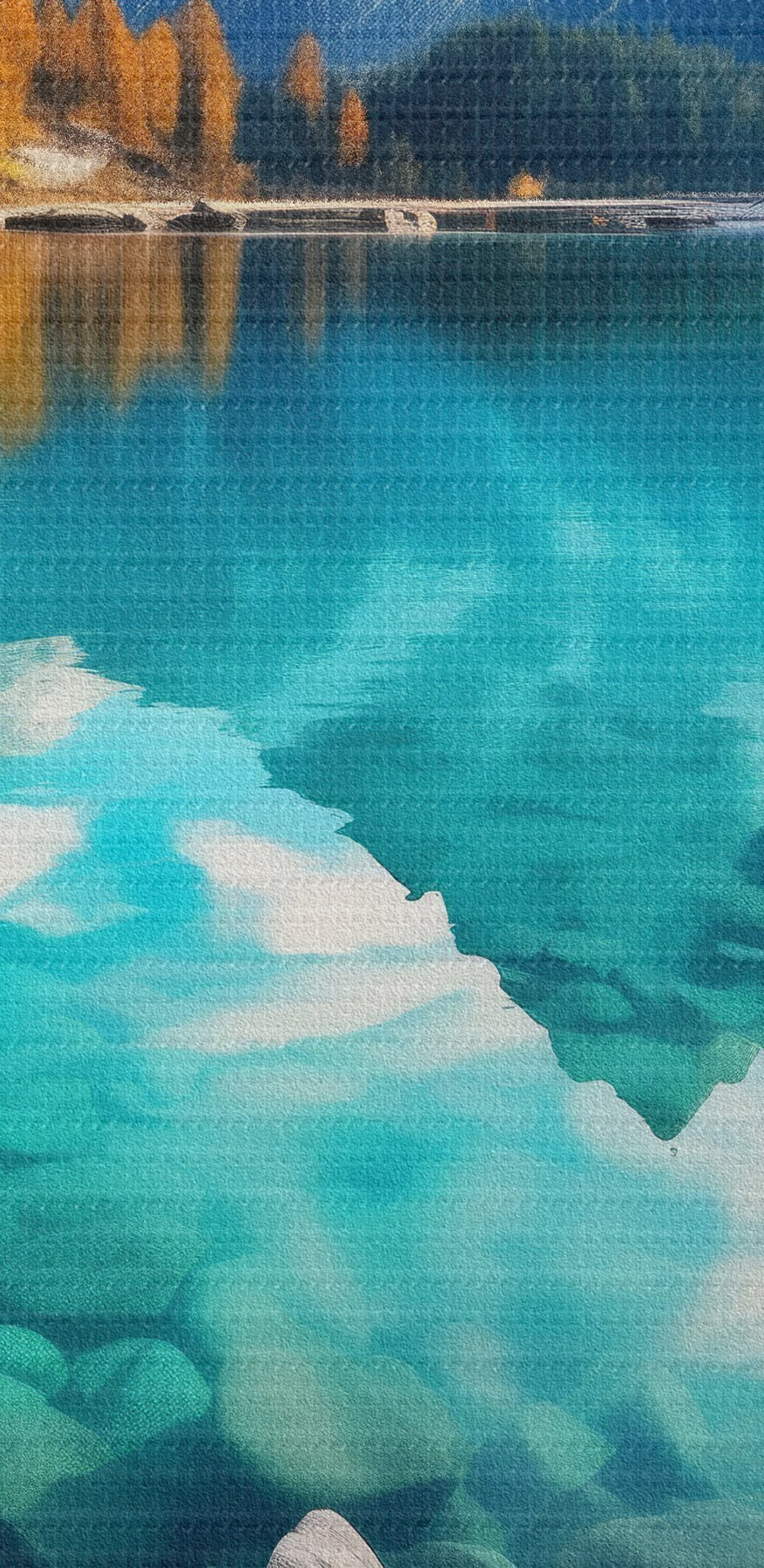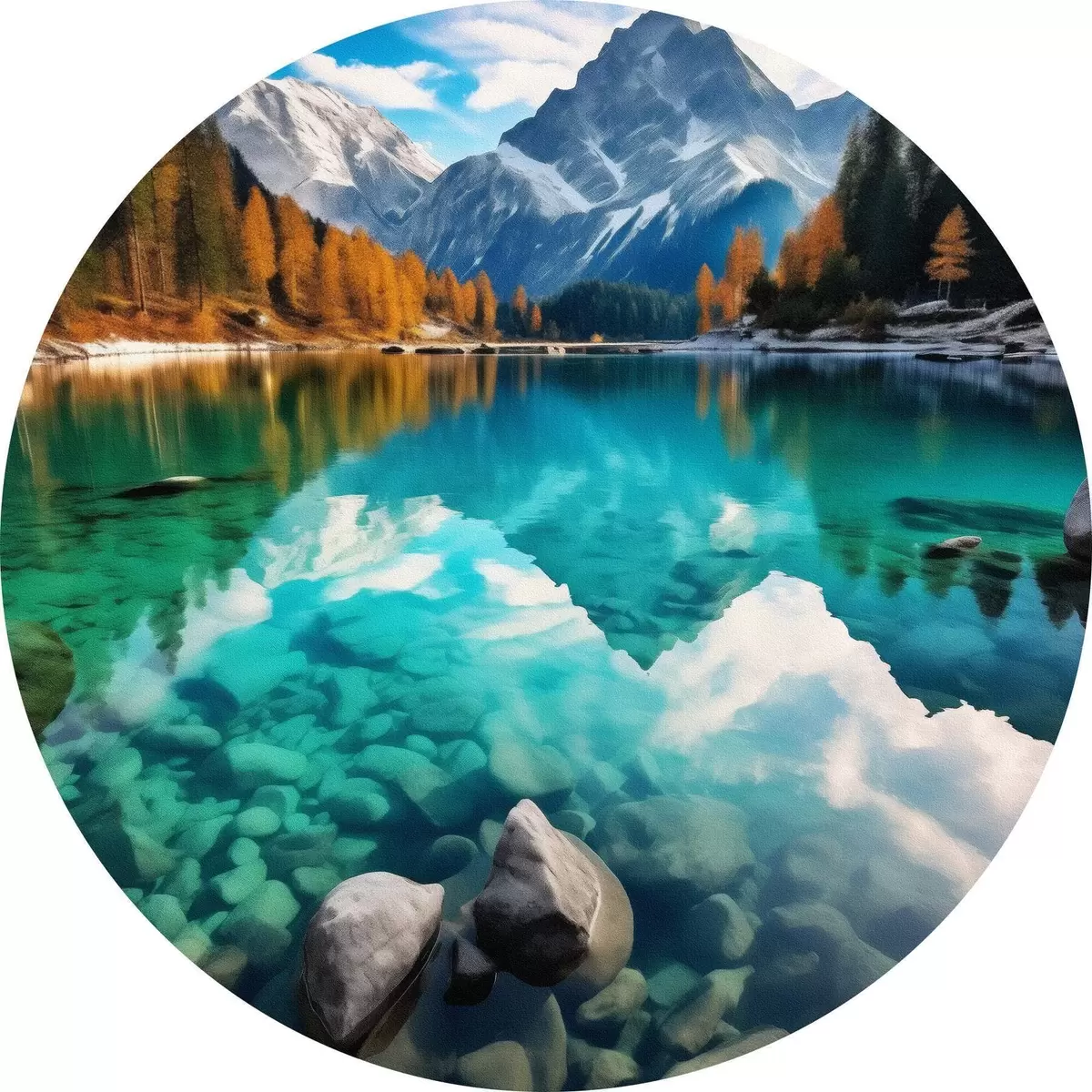 Кругла картина Гірське озеро з бірюзовою водою та осінніми модринами r46517