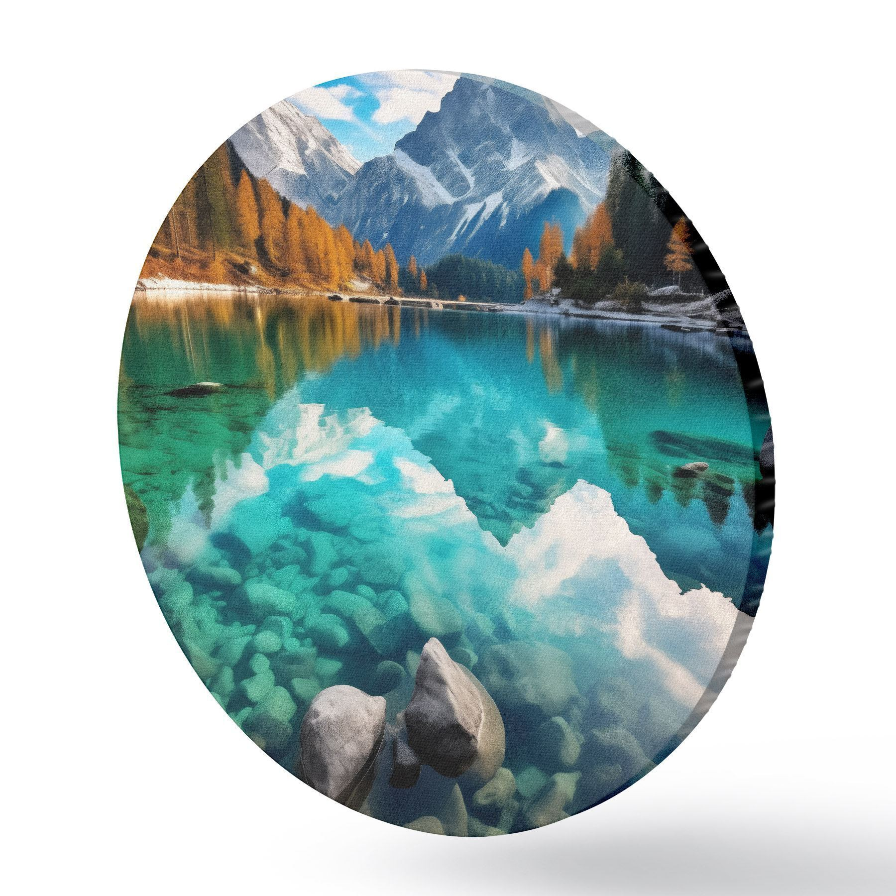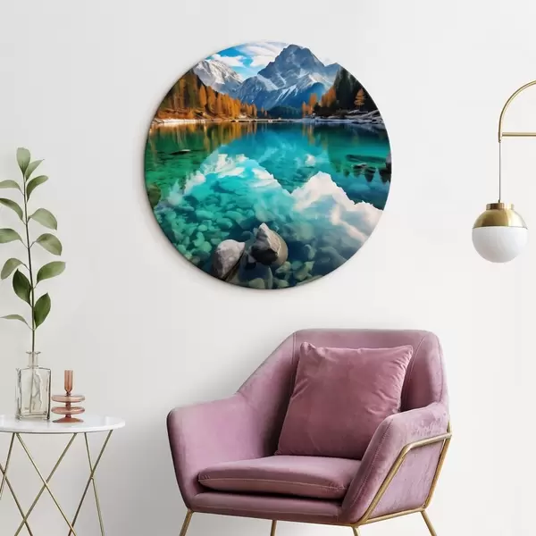 Кругла картина Гірське озеро з бірюзовою водою та осінніми модринами Nr r46517