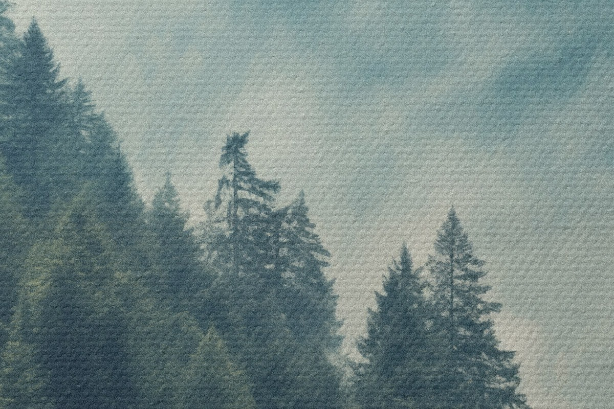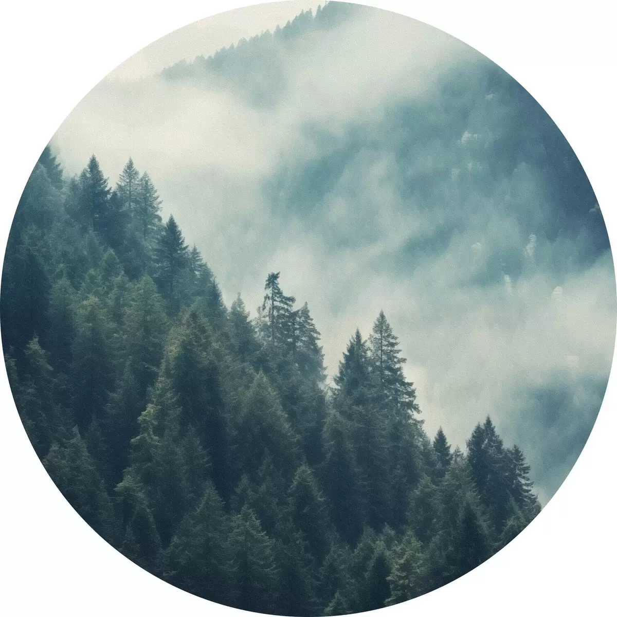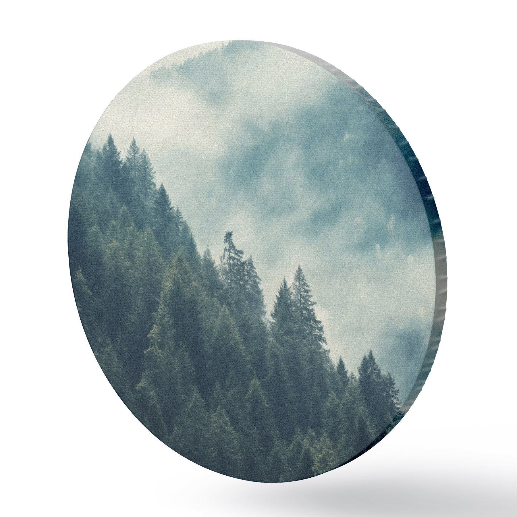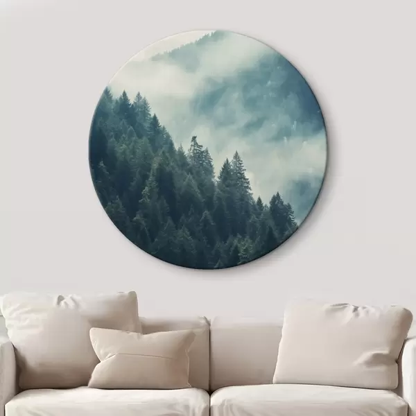 Кругла картина Туманні гірські хребти і темний хвойний ліс r46518
