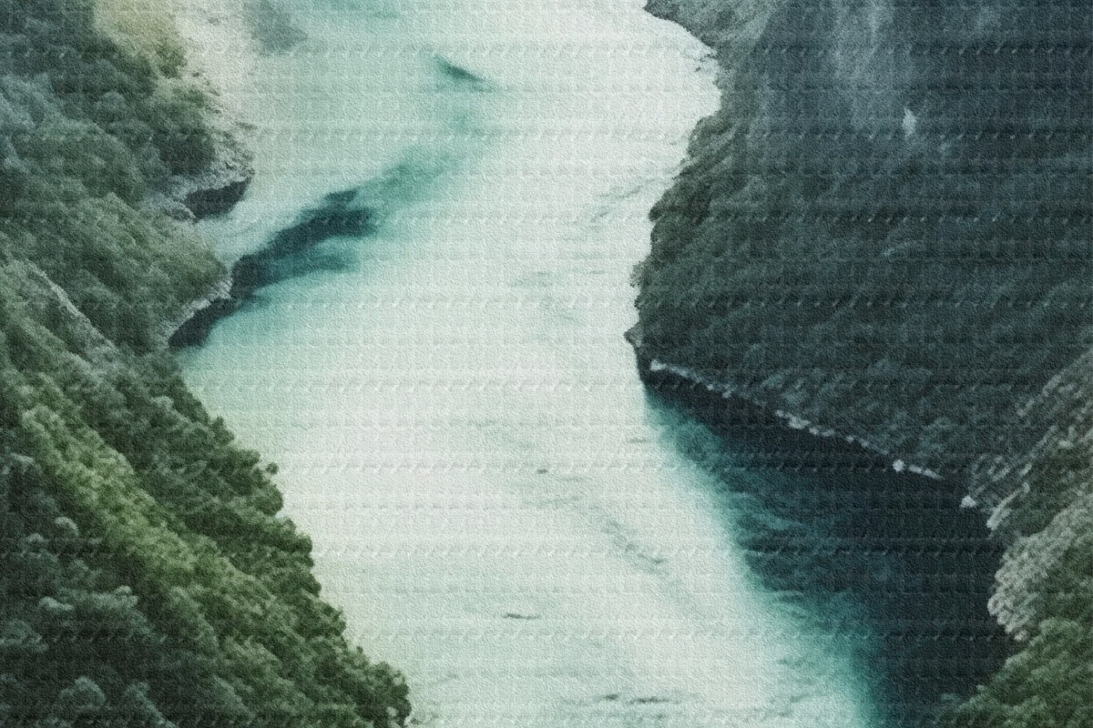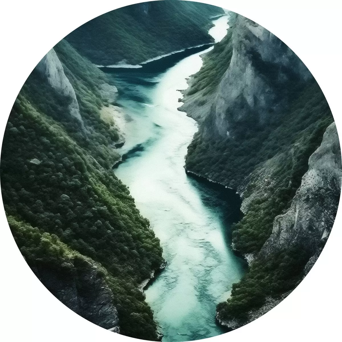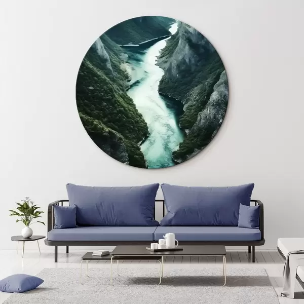 Кругла картина Вузьке ущелині з бірюзовою течією зверху Nr r46522