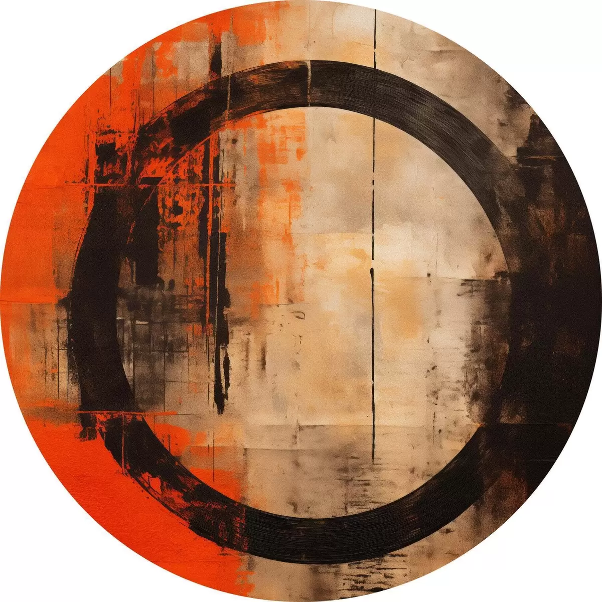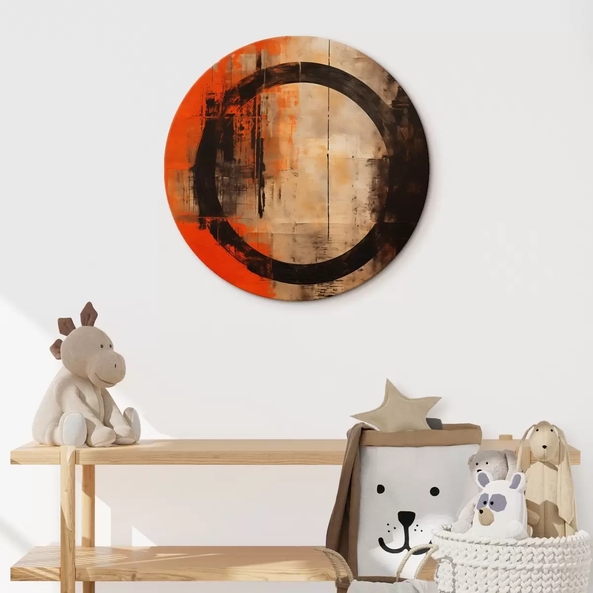 Кругла картина Абстрактний малюнок з великим чорним колом і теплими текстурами Nr r46528