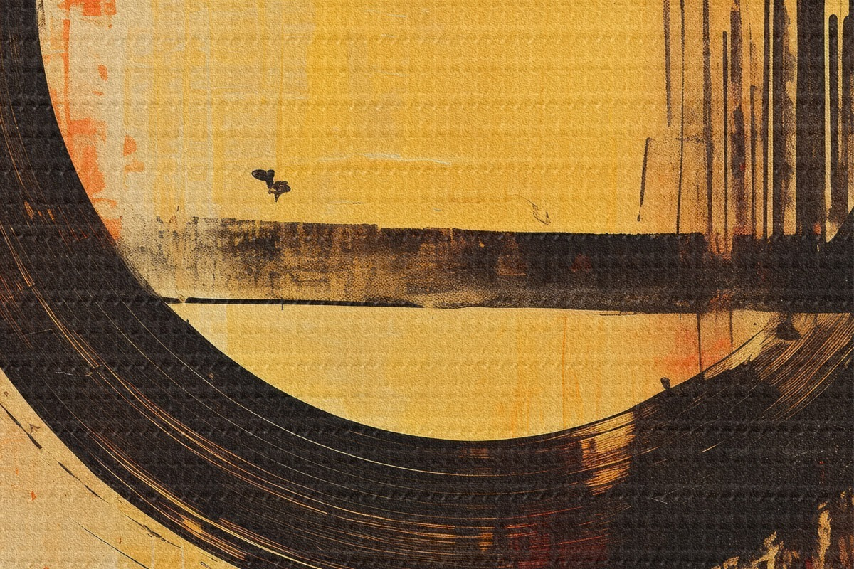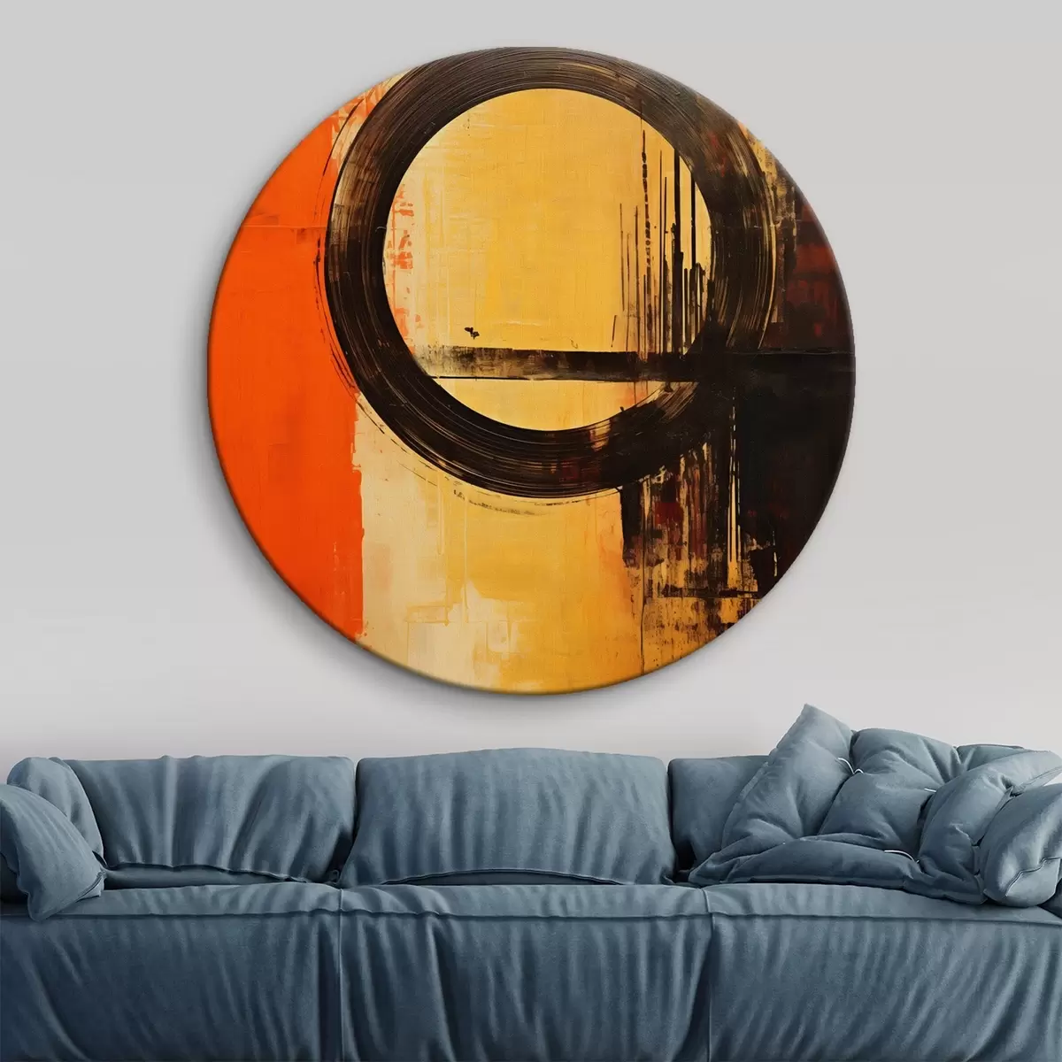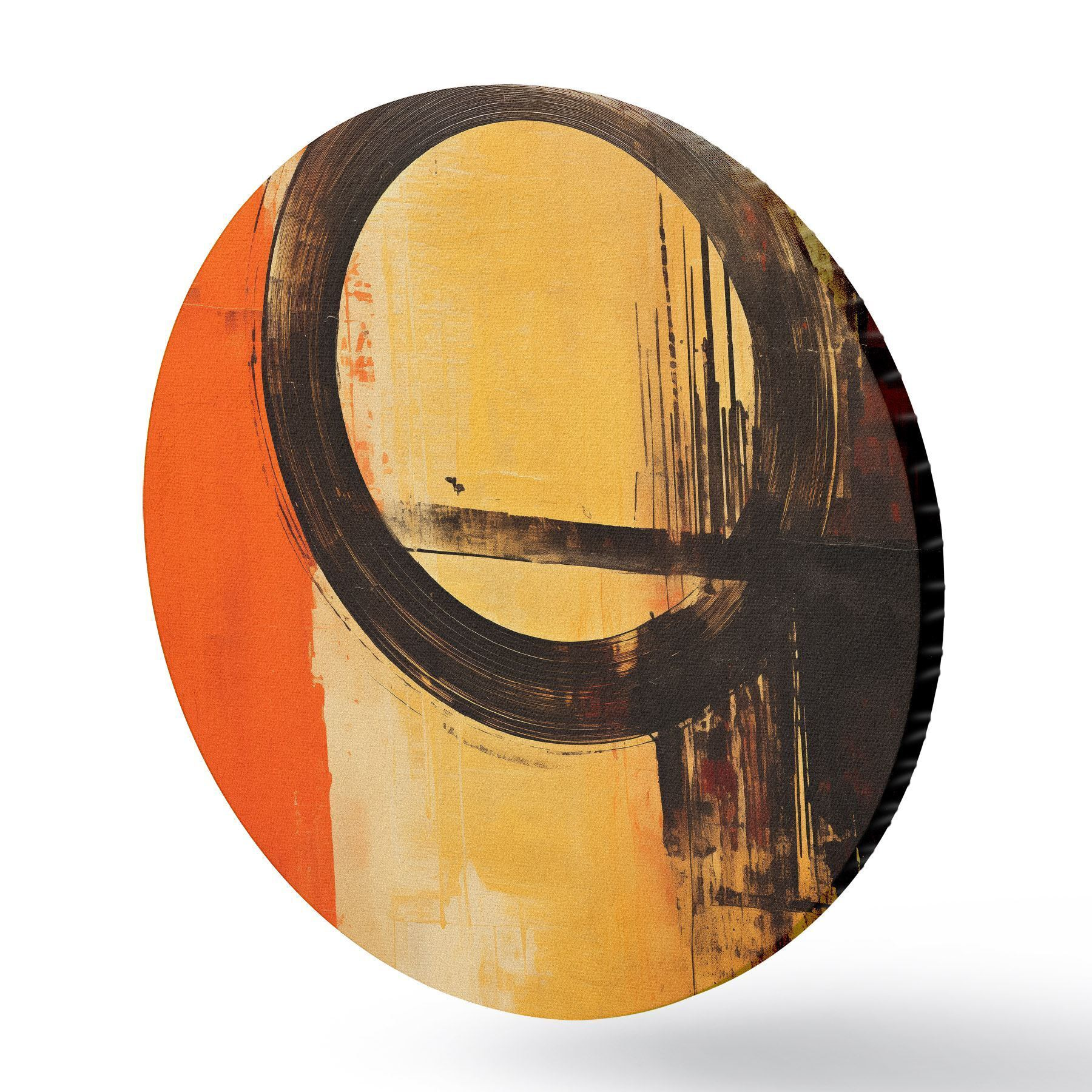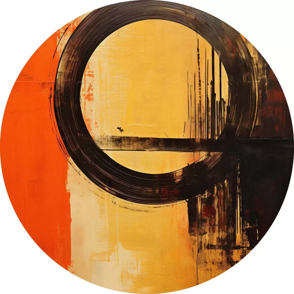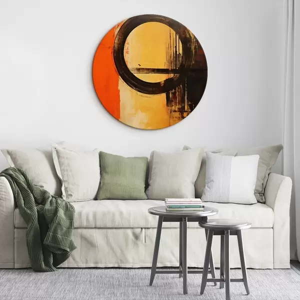 Кругла картина Абстрактний малюнок з чорним кільцем на теракотово-піщаному тлі Nr r46529