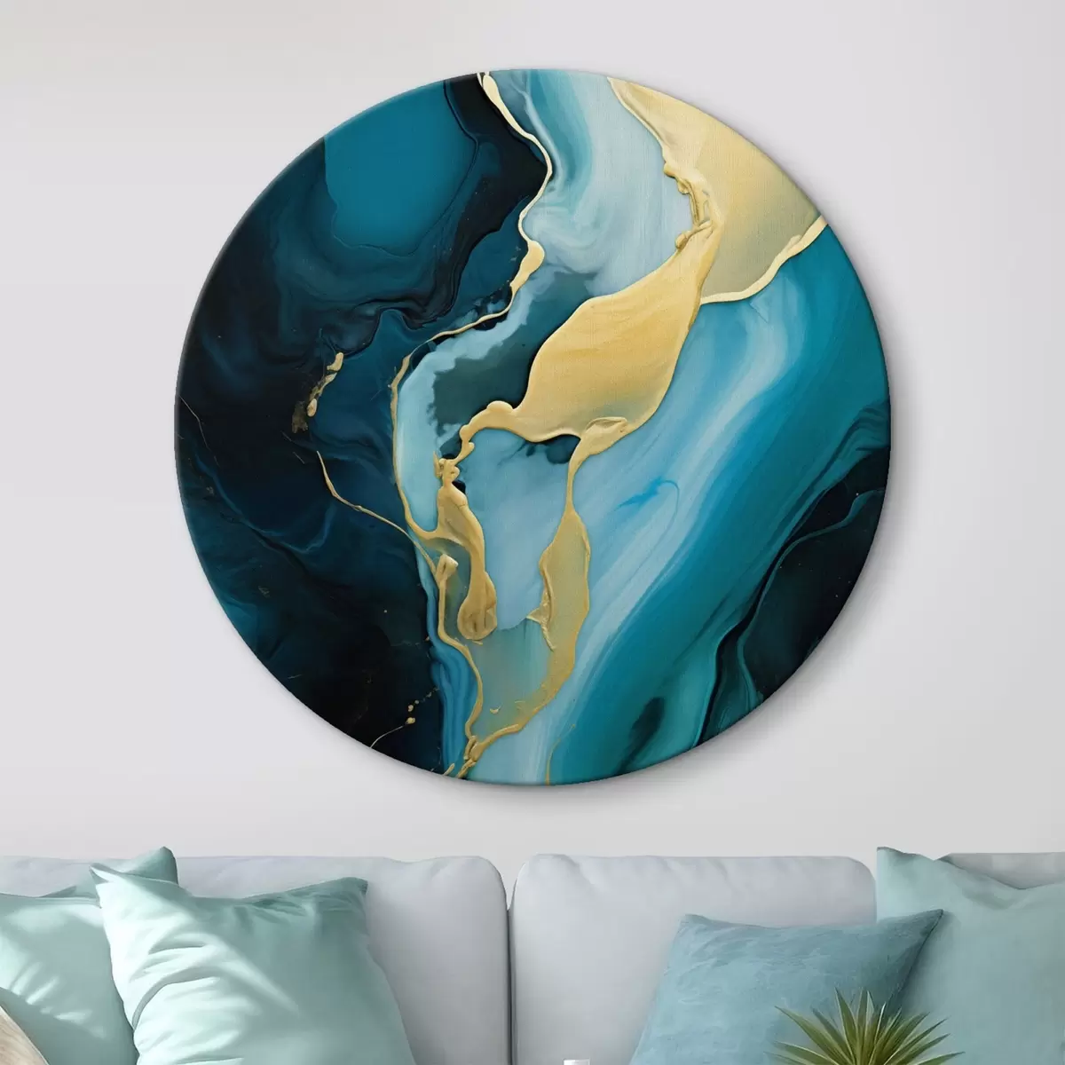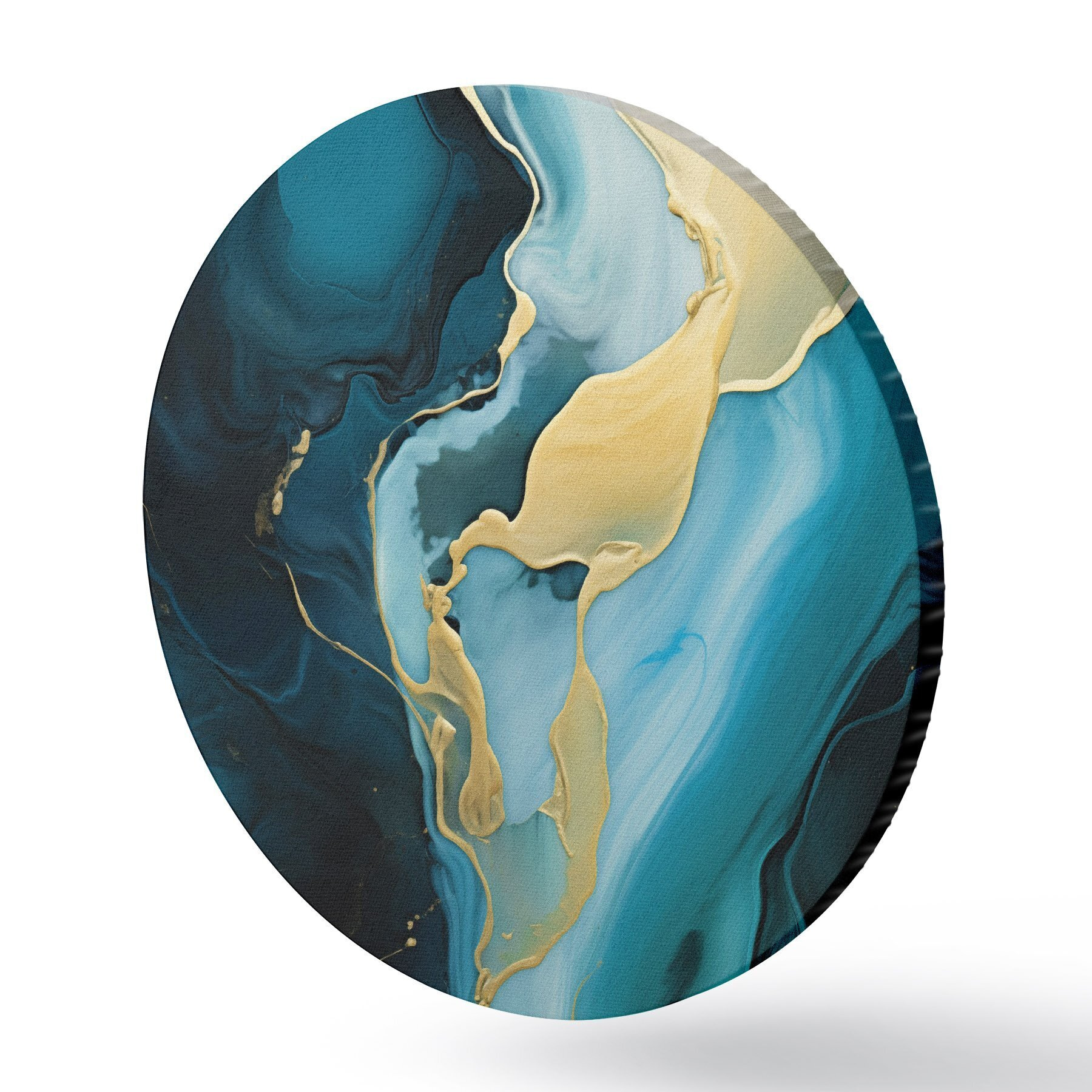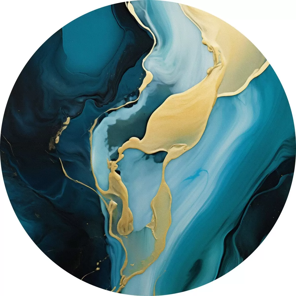 Кругла картина Блакитно-синій абстрактний малюнок із струменем охри Nr r46530
