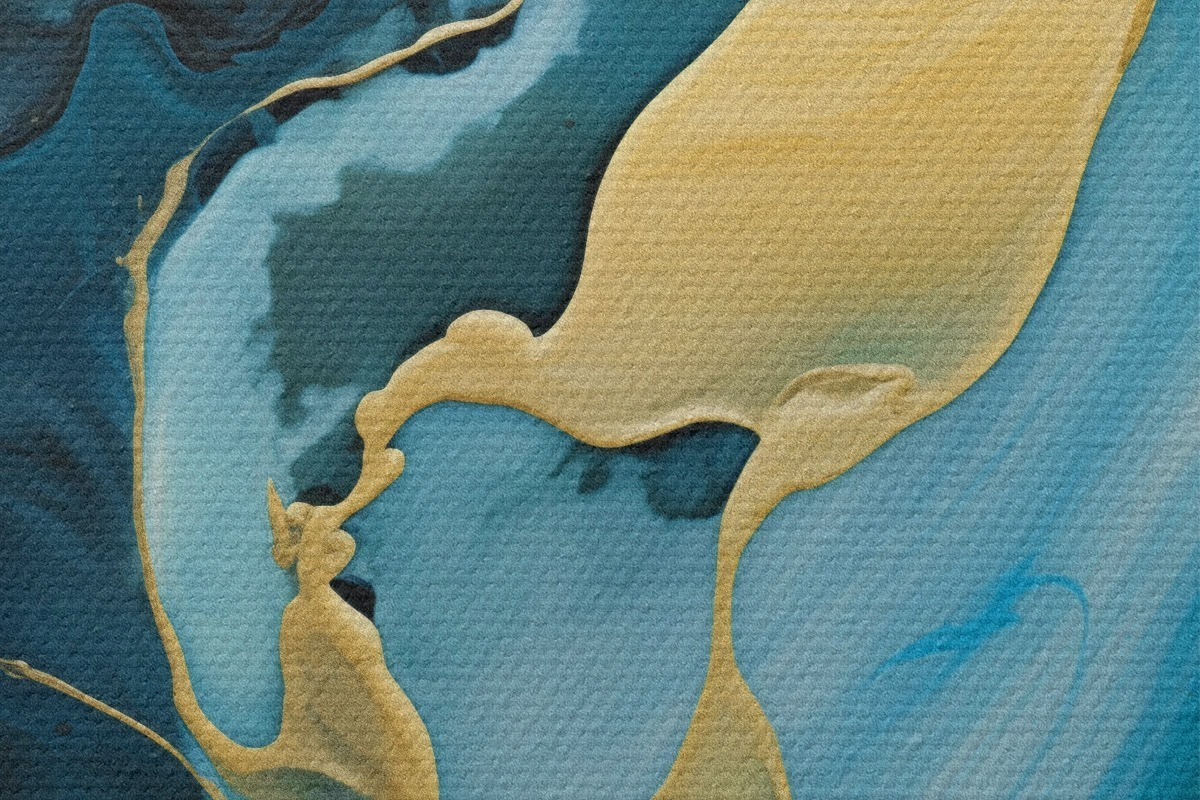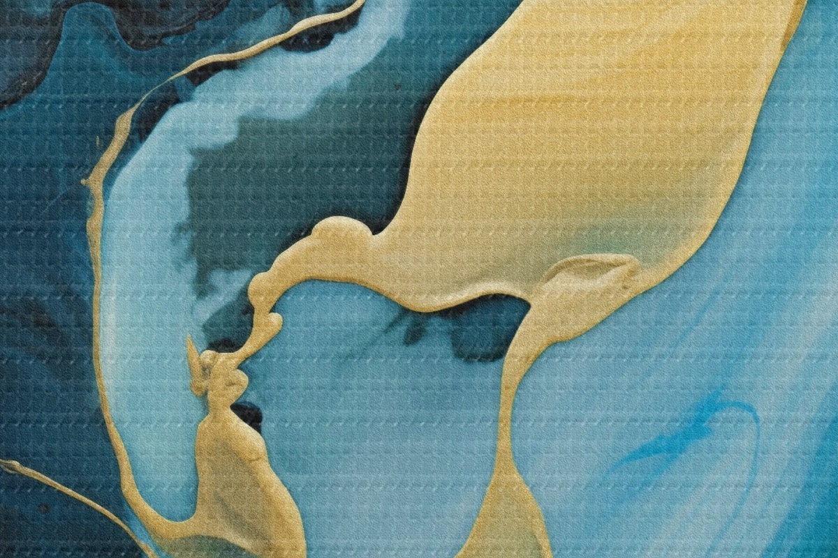Кругла картина Блакитно-синій абстрактний малюнок із струменем охри r46530
