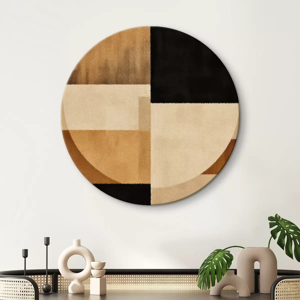 Кругла картина Напівкола та квадрати в теплих тонах, м'яка текстура r46531