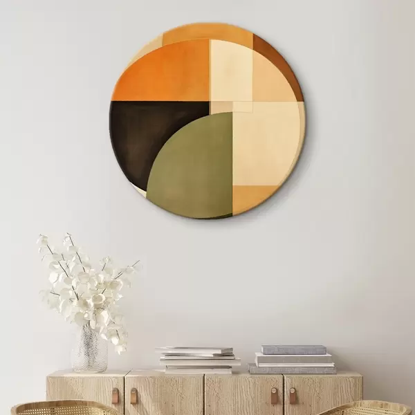 Кругла картина Пересічні кола в пісочно-оливковій палітрі Nr r46537