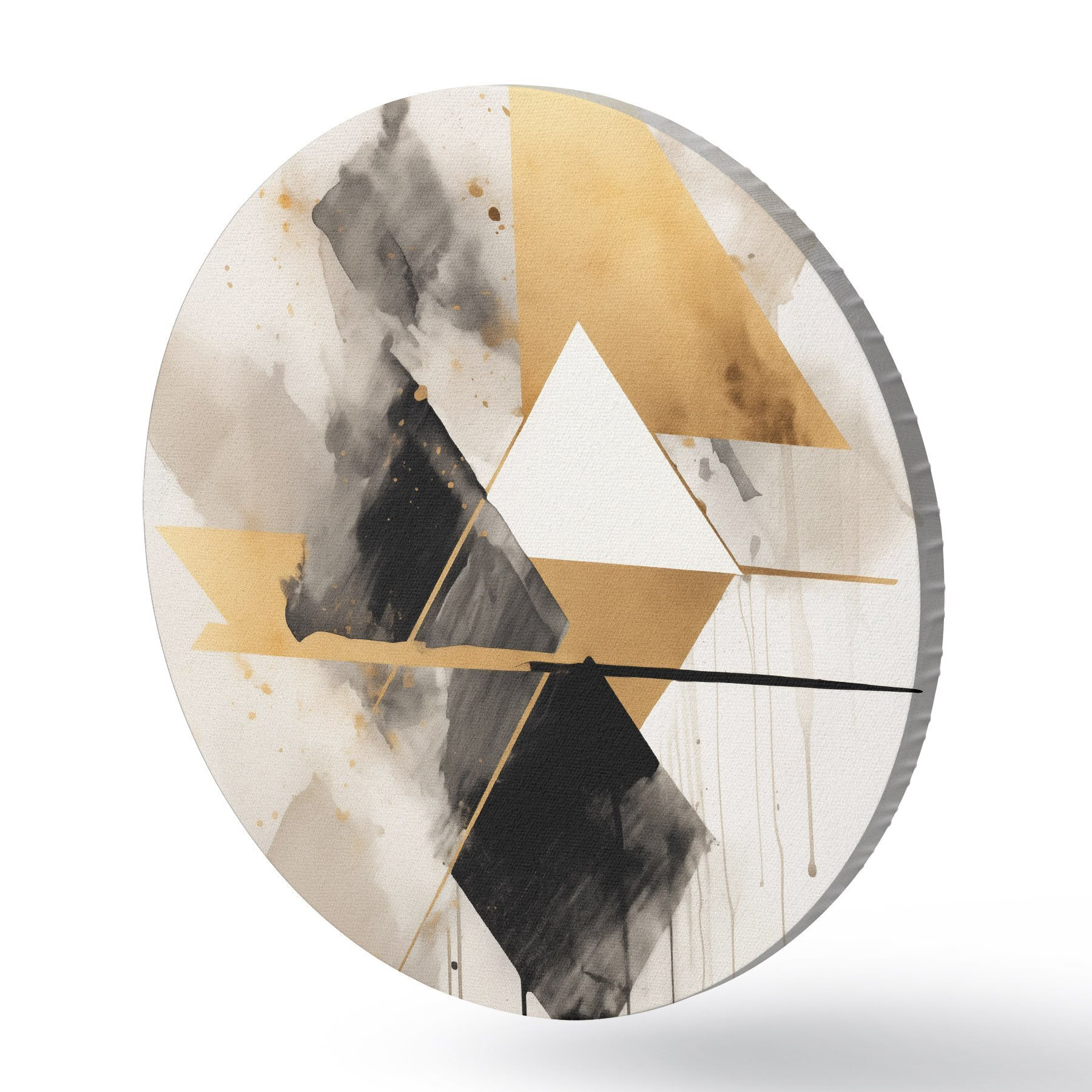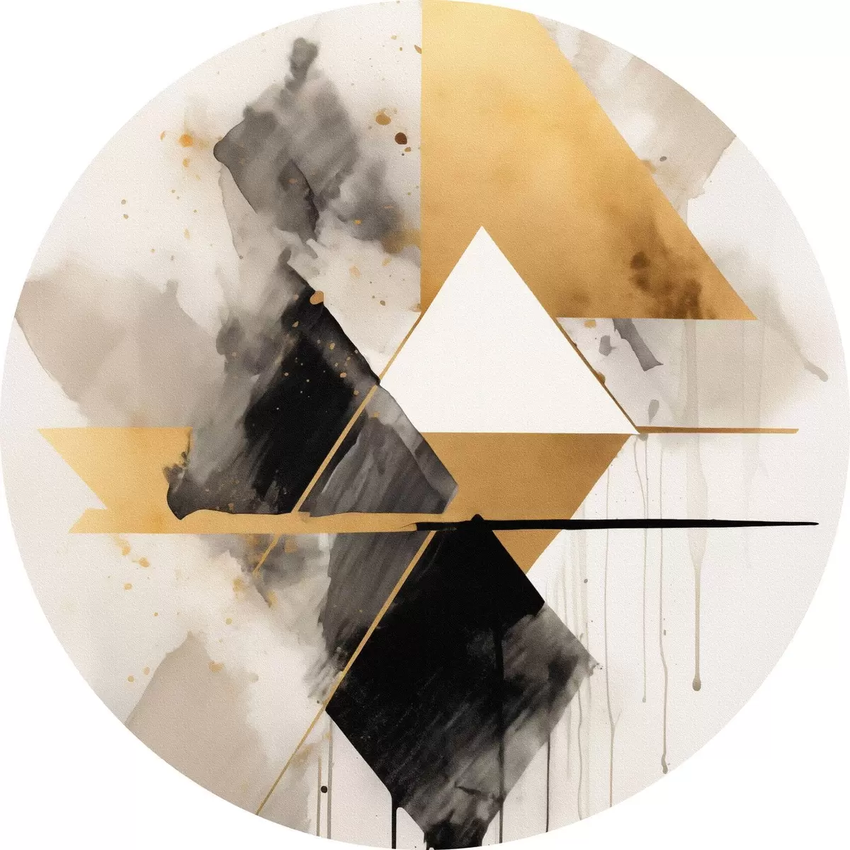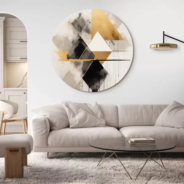 Кругла картина Геометрія з трикутниками та чорним ромбом, бежеві штрихи Nr r46539