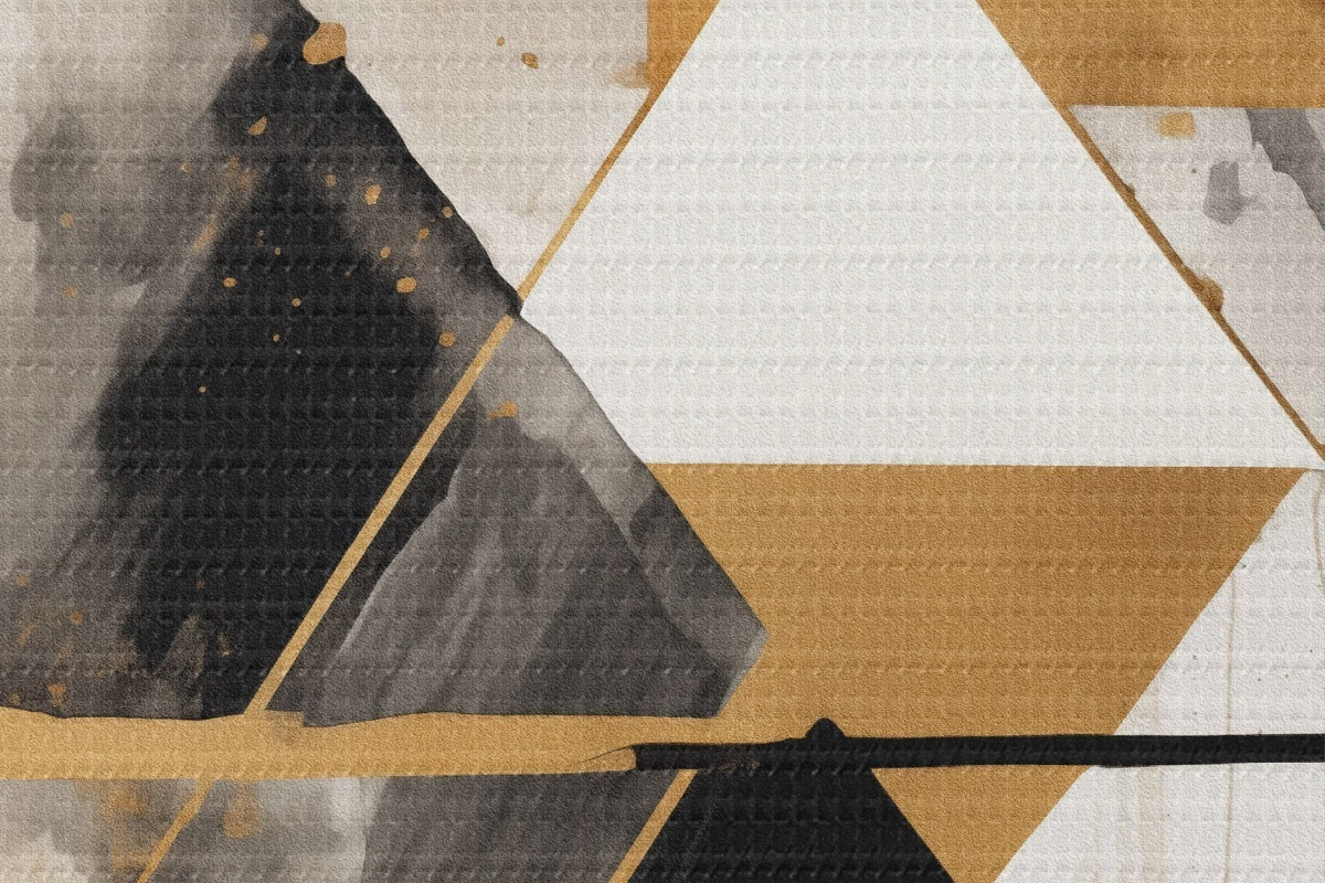 Кругла картина Геометрія з трикутниками та чорним ромбом, бежеві штрихи r46539
