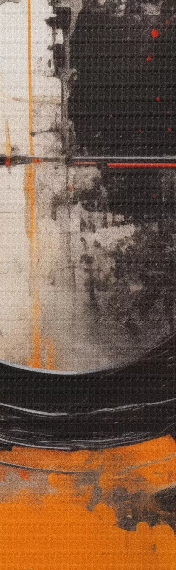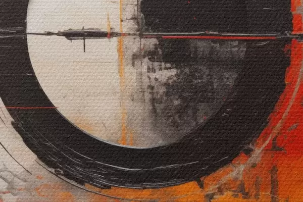 Кругла картина Чорне коло на білому тлі, помаранчеві штрихи та бризки r46549