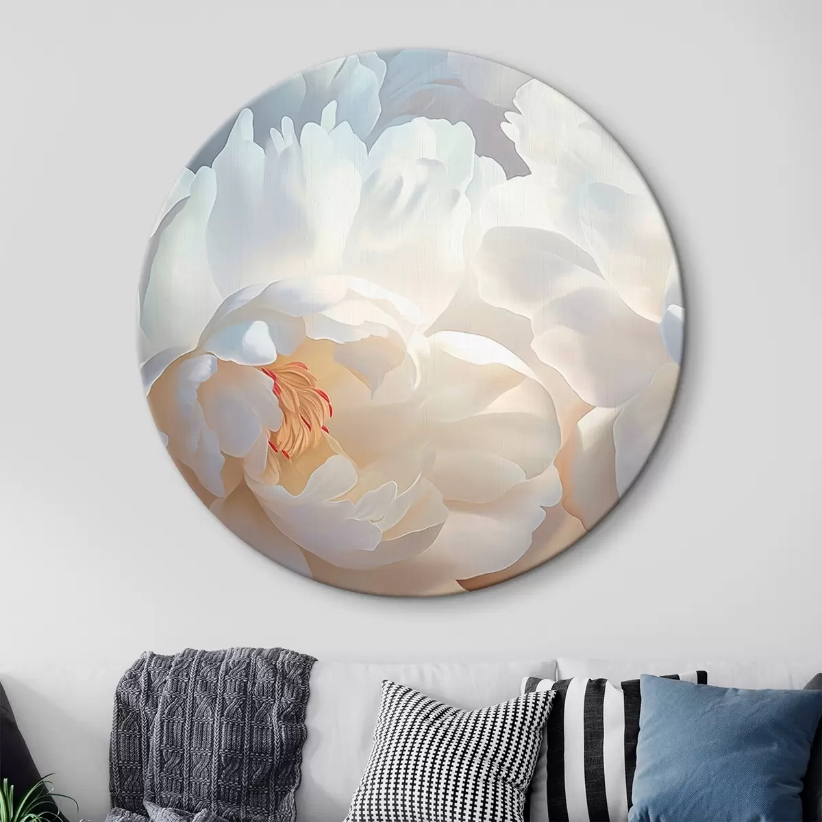 Кругла картина Великі білі півонії r46560