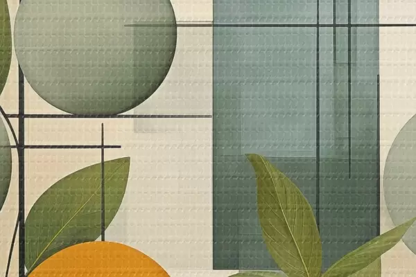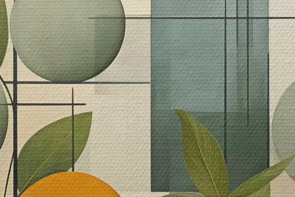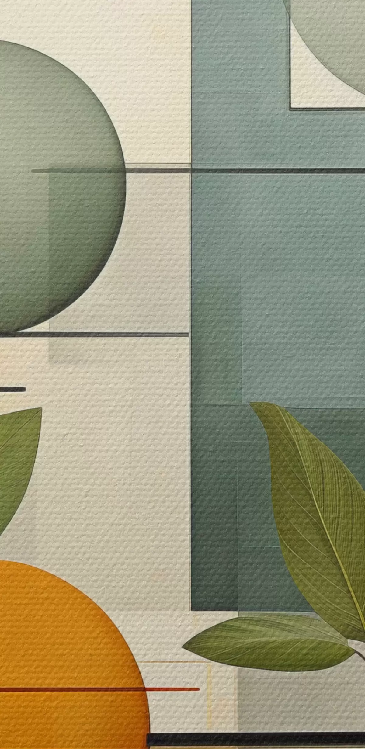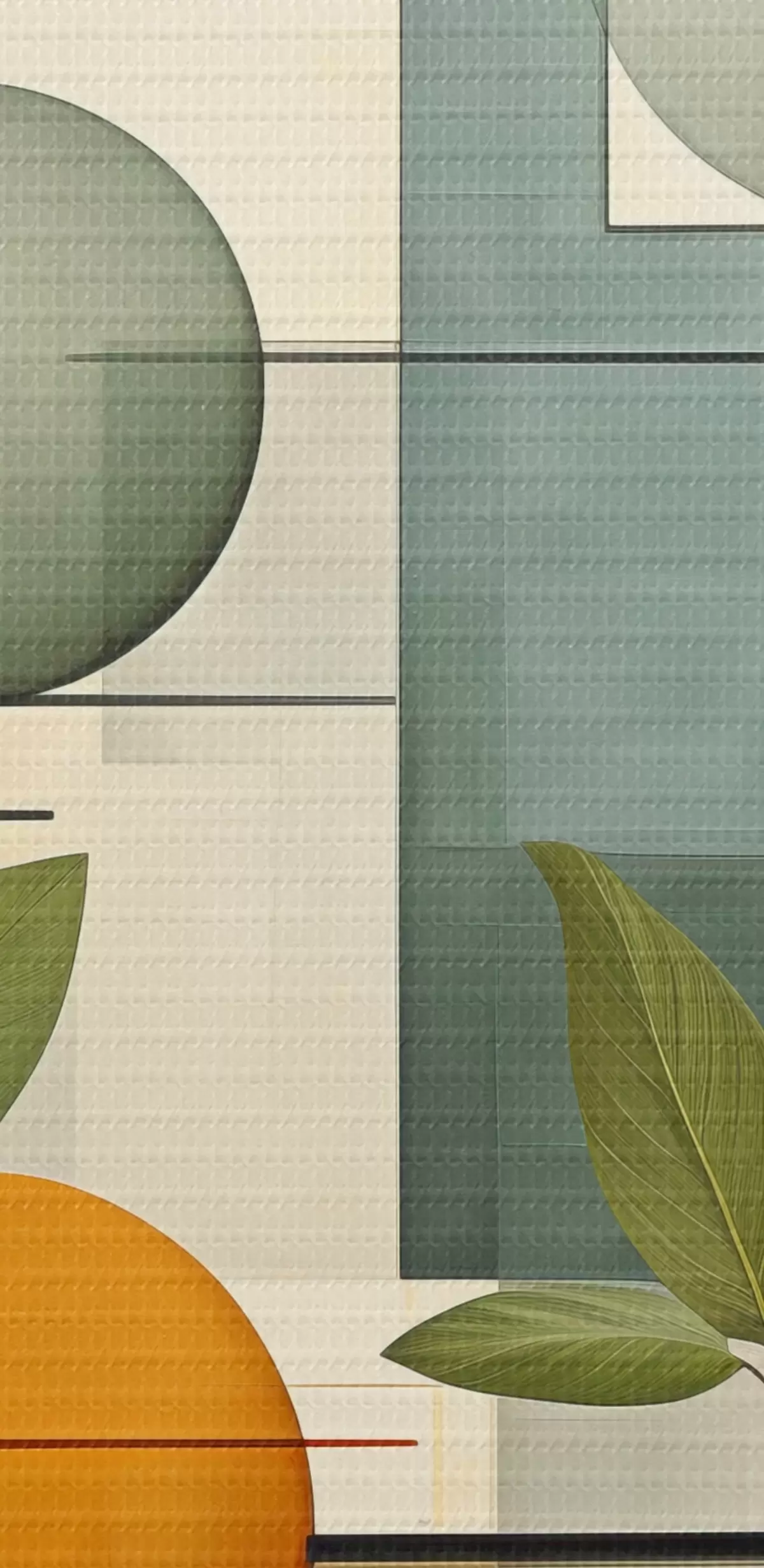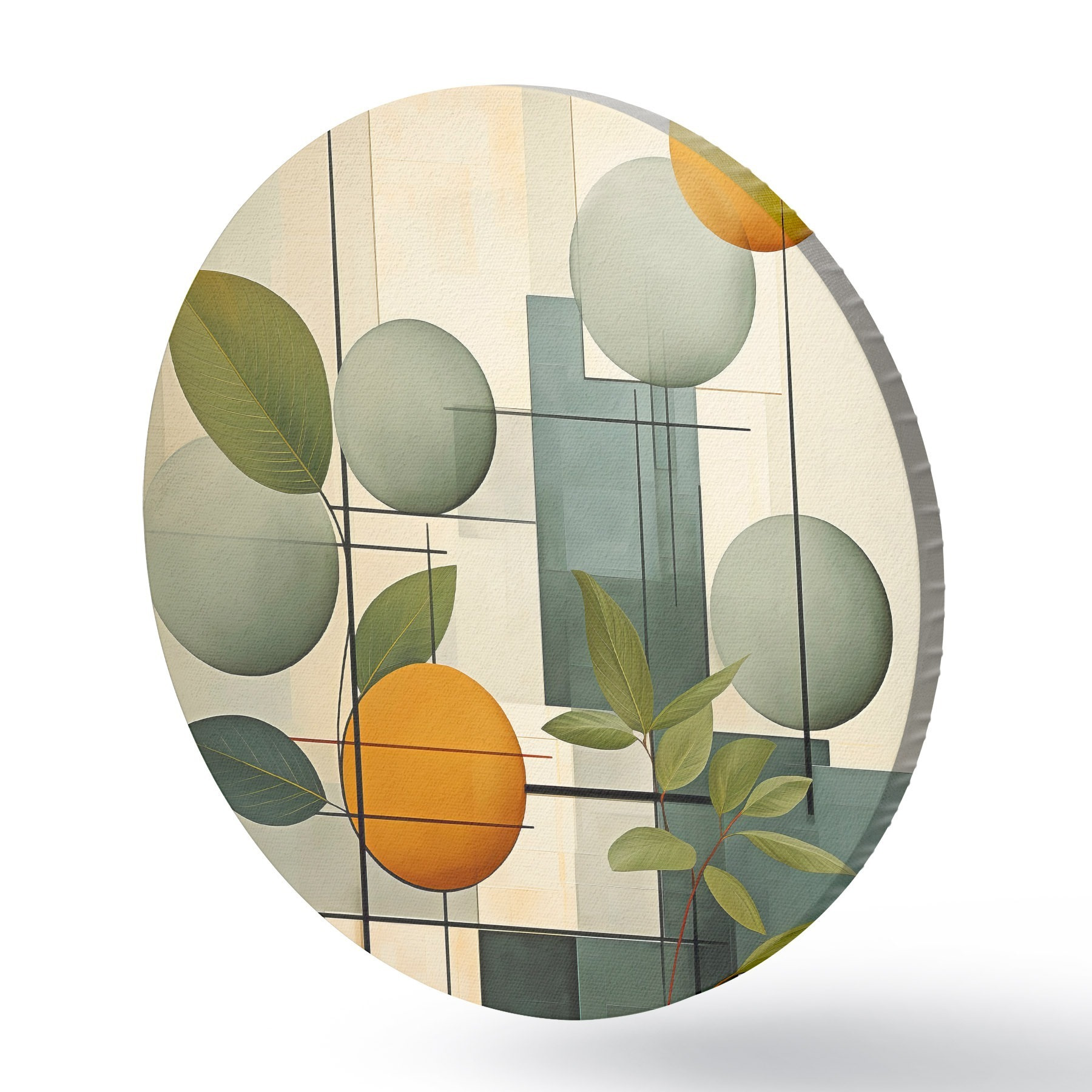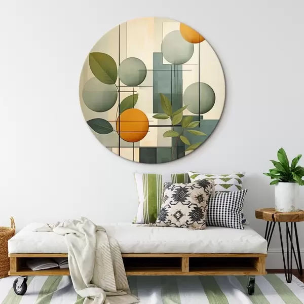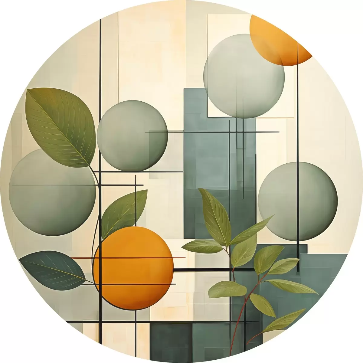 Кругла картина Геометрична абстракція з рослинами Nr r46579